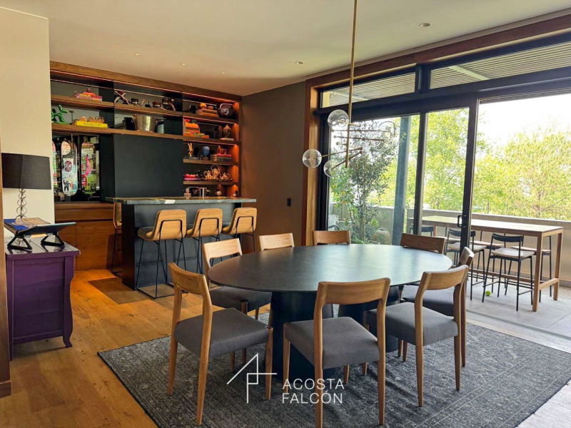 INCREÍBLE PROYECTO DE FERNANDO OGARRIO EN LA LOMA DE SANTA FE Este hermoso departamento fue construido en 2020 dentro del exclusivo desarrollo Misiones en La Loma de Santa Fe. Nos encontramos con un bello departamento con exclusivo diseño de interiores de 400m2 (370m2 de construcción + 30 m2 techados de terraza) con 4 cajones de estacionamiento y una bodega. Tiene 3 habitaciones, todas con baño y vestidor. 1 medio baño de visitas: Exclusivo diseño de interiores, muebles empotrados en madera de nogal, baños con mármol, carcelería alemana, ventanas de doble vidrio, madera de ingeniería en todo el departamento. Calefacción hidrónica. Gran cocina con tope de cuarzo, Cocina DADA. Equipos gama premium. - Área de servicio grande: cocina, despensa, lavandería, patio, cuarto de servicio. Dos bodegas: una en el departamento y otra en el estacionamiento. - 4 cajones de estacionamiento Es un condominio súper exclusivo que consta de 3 edificios con 8 departamentos cada uno. Con gimnasio y alberca, canchas de pádel y doble seguridad.