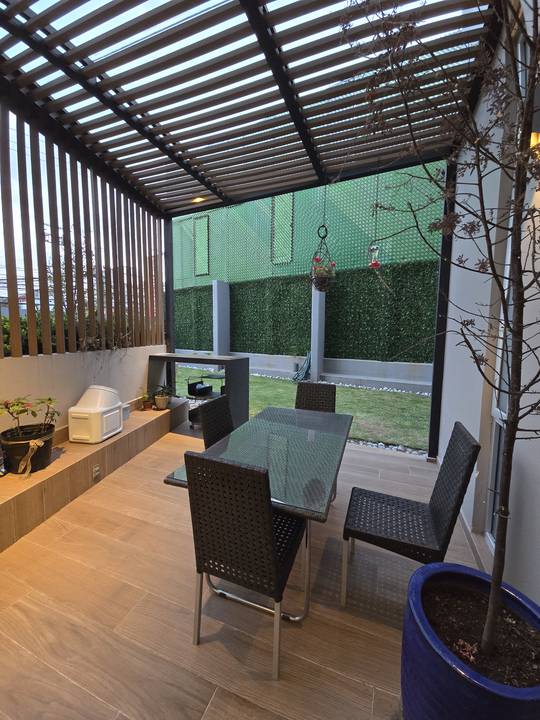 Hermoso Garden House totalmente Remodelado con jardín. Departamento de amplio metraje, remodelado con los mejores acabados. Ubicado en primer nivel para un acceso mas sencillo, te recibe un amplio espacio de sala comedor, con acabados en marmol en pisos, buena altura con plafones y luces led de la mejor calidad. El baño de visitas de buen tamaño lo encuentras a la izquierda. La cocina es estilo abierta con barra de granito y un espacio de almacenamiento que aprovecha cada espacio dentro de este ambiente, a la derecha encuentras el area de lavado y un closet de visitas muy útil; así como el cuarto de servicio con baño completo. Al fondo, tenemos la salida al jardín y terraza con cristaleria europea, el pergolizado permitener un comedor y asador para tus reuniones. El tamaño del jardín es amplio y cubre parte de las recamaras y la oficina de fondo. Pasamos a la primer habitación secundaria de buen tamaño, la cual tiene closet amplio, una muy buena altura y acceso al baño completo. Los pisos son de duela industrial y hay espacio suficiente para un area de tareas o juegos para quien la habite. Este baño es compartido por la oficina que encontramos al fondo y esquina del jardín, la cual es un area privada que puede usarse tambien como estudio. La segunda recamara secundaria tambien cuenta con el mismo acabado en pisos y cuneta con su closet de igual manera, adicional tiene vista al jardin. La habitación principal tiene acabados de iluminación indirecta, baño completo, vista hacia el jardín que le da mucha iluminación. Cuenta además con baño completo amplio con acabados de marmol con doble lavabo remodelado y un vestidor de buen tamaño. El departamento cuenta con 2 estacionamentos en fila y 1 bodega de las mas grandes del edificio para todo su almacenamiento. Como amenidades encuentras: un roof top, area de juegos en el mismo lugar, alberca techada, vapor, regaderas, cancha de squash, gimnasio, salón de eventos sociales equipado. A minutos de Tecamachlaco, Bosques de las Lomas, Interlomas y Santa Fe.