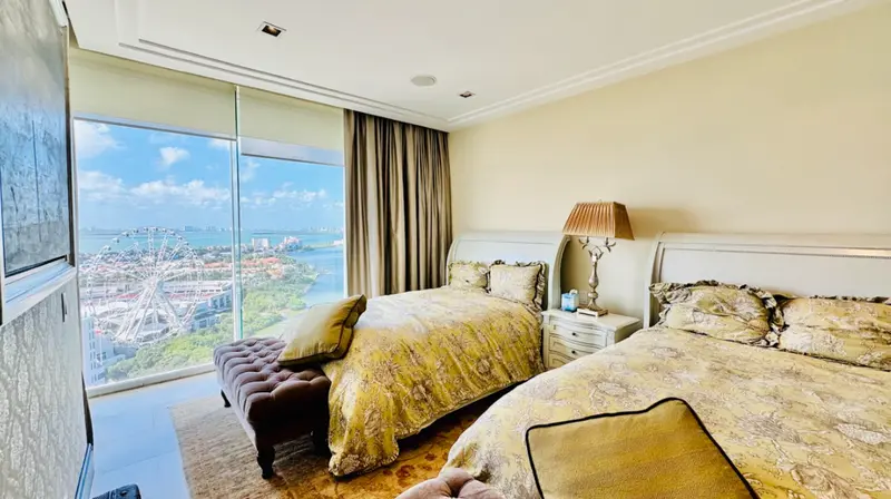 Descubre este espectacular departamento de lujo en el exclusivo Residencial Emerald, el desarrollo frente al mar más prestigioso de la zona hotelera de Cancún. Con 822 m², esta residencia única combina amplitud, elegancia y funcionalidad, ideal para quienes buscan confort al más alto nivel. - 6 recámaras con baño completo y vestidor; la principal incluye tina y closet vestidor - Amplia terraza con jacuzzi y vistas infinitas al Mar Caribe - Family room + oficina privada, ideal para trabajar desde casa - Comedor y antecomedor, más bar integrado en la estancia - Acabados en mármol, distribución original desde preventa - Doble acceso directo al departamento para mayor privacidad - 2 cuartos de servicio con cocina, sala y acceso independiente - 5 cajones de estacionamiento + bodega de 9 m² Ubicado en una de las zonas más privilegiadas, a solo minutos del centro comercial La Isla, cines, restaurantes de autor y atracciones turísticas. Disfruta de vistas espectaculares tanto al mar como a la laguna Nichupté, además de acceso directo a una playa de aguas tranquilas y privacidad sin igual. ¿Buscas exclusividad frente al mar en Cancún? Esta propiedad es perfecta como residencia permanente, inversión de alto valor o vacation home en el Caribe Mexicano. Contáctanos hoy y agenda tu visita privada.