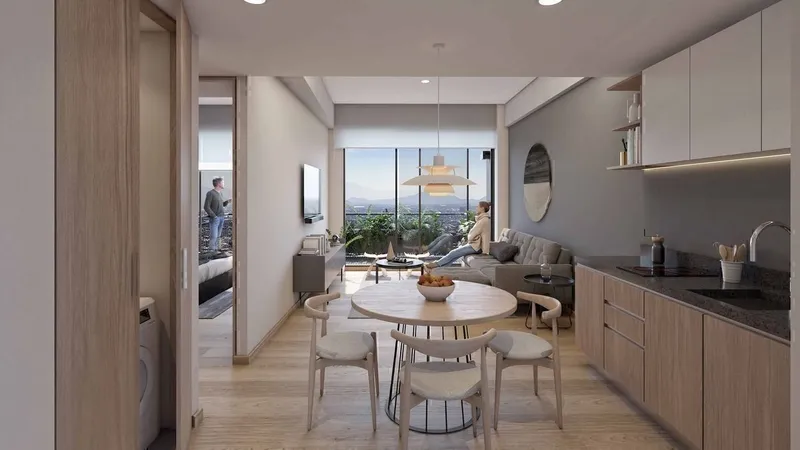 Condominio vertical de 12 niveles de altura más un Rooftop y una terraza común en el nivel 7, el primer nivel con un local comercial, todos los departamentos cuentan con ventilación e iluminación natural. El proyecto cuenta con las siguientes amenidades: Roof top &sky garden Roof Garden & Grill Gym con baño Pet Zone & Pet spa Patio de usos múltiples con zonas de estar y zonas para trabajar Máquina de hielo y máquinas expendedoras de alimentos Shut de basura Seguridad las 24 horas Paquetería en recepción Departamento interior tipo loft en piso 7, recámara, un baño completo, sala comedor y cocina integral, clóset de lavado. 38.62 m² habitables y 1.96 de balcón. Entrega en 2027