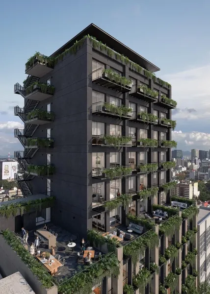 Condominio vertical de 12 niveles de altura más un Rooftop y una terraza común en el nivel 7, el primer nivel con un local comercial, todos los departamentos cuentan con ventilación e iluminación natural. El proyecto cuenta con las siguientes amenidades: Roof top & sky garden Roof Garden & Grill Gym con baño Pet Zone & Pet spa Patio de usos múltiples con zonas de estar y zonas para trabajar Máquina de hielo y máquinas expendedoras de alimentos Shut de basura Seguridad las 24 horas Paquetería en recepción Departamentos interiores de una habitación, un baño completo, sala comedor y cocina integral, clóset de lavado. 46.71 habitables y 7.5 de balcón Cajón de estacionamiento en venta. Entrega en 2027