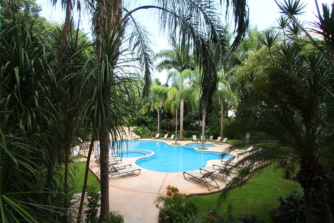 Departamento en segundo piso con acceso directo y cómodas áreas de servicios. Consta de una amplia cocina, un comedor espacioso y una sala luminosa. La recámara principal ofrece un closet grande y un baño completo, mientras que dos recámaras adicionales también cuentan con closet y baño completo cada una. Disfruta de dos terrazas cubiertas y un balcón privado para relajarte al aire libre. El inmueble incluye estacionamiento privado, cubierto y cerrado en el sótano, así como caja de seguridad y vigilancia las 24 horas. La zona común cuenta con alberca, jacuzzi y jardín. Ubicado en Palmar del Sol, a solo 5 minutos de la playa.