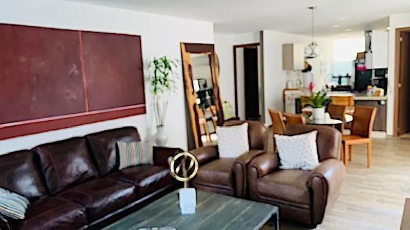 A dos minutos de la Carretera Cuajimalpa-México en uno de los mejores desarrollos de la zona. 123m habitables en dos recámaras cada una con baño y la principal con vestidor. Amplia estancia con otro baño completo y balcón de 3.5m. Cocina semi-abierta con gran despensa y cubierta de granito. Espacio para tercer recámara junto a la cocina que en este momento dispuesto ahora como una gran e iluminada oficina con linda vista que al estar junto a la cocina se puede usar también como family room. La recámara principal tiene una vista espectacular al jardín central del desarrollo que le da gran amplitud de vista y una perfecta iluminación y temperatura. Los pisos son de loseta simulando madera de muy alta calidad. Área de lavado. 2 lugares de estacionamiento y bodega. El conjunto tiene lindas áreas comunes rodeadas de vistas verdes. - Gimnasio - Salón para fiestas con baños - Terraza con barra y tarjas para fiestas al aire libre. - Salón para fiestas techado con grandes ventanales y vistas verdes. Vigilancia 24/7 En el precio de renta el mantenimiento está incluido que es de $4,500.00