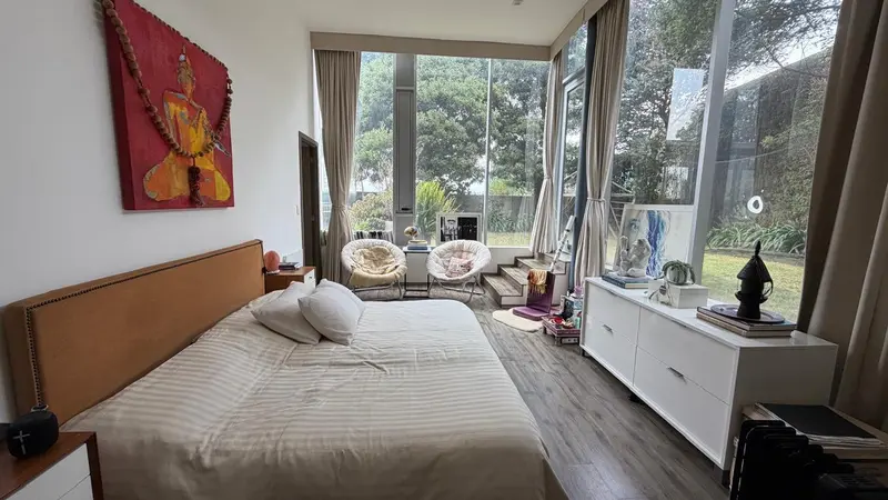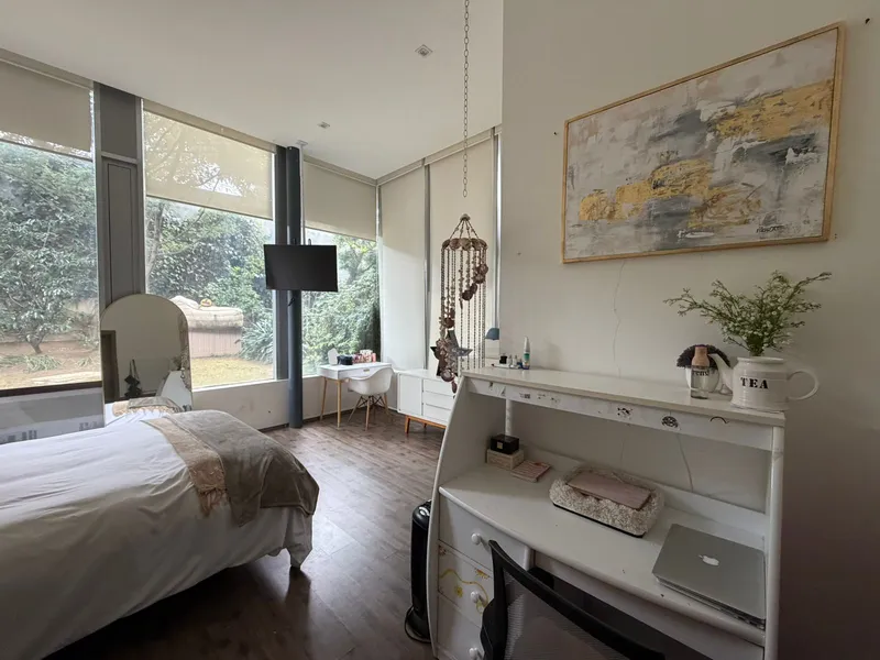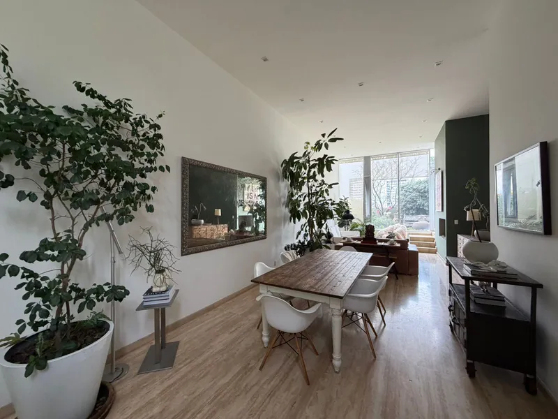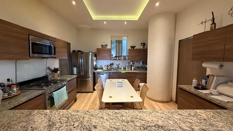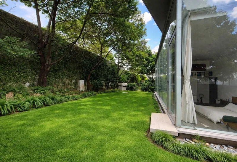 Departamento en planta baja con jardín privado de 280 m². La altura de los plafones es de aproximadamente 4 metros, lo que permite la entrada de luz natural a través de ventanales de piso a techo en todas las áreas. Cuenta con vestíbulo, sala y comedor con acceso directo al jardín, sala de TV, medio baño de visitas, cocina con antecomedor y diversas áreas de guardado. Dispone de tres recámaras, cada una con vestidor y baño completo con ventilación natural. Los pisos y muros son de mármol, y los baños cuentan con canceles de vidrio templado. El área de servicio tiene acceso desde la cocina e incluye lavandería, cuarto y baño de servicio, así como bodega. El jardín rodea todo el departamento e incluye pérgola con área de sala y comedor exterior, árboles y plantas. Cuenta con tres lugares de estacionamiento y bodega. Para aviso de privacidad, quejas, sugerencias o aclaraciones, escríbenos al correo privacidad@zrygbienesraices.com Oficina Pte. 55 43236307 Los gastos e impuestos de escrituración y los cargos relacionados con algún tipo de crédito NO están incluidos en el costo de venta, así como el mobiliario, electrodomésticos y arte que se muestran en las fotografías.