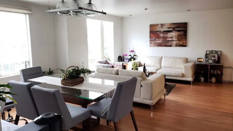 ¡Departamento en Venta Cerca de Santa Fe! ¡Tu nuevo hogar te espera! Descubre este magnífico departamento, ubicado en una de las zonas más exclusivas de la ciudad, muy cerca de Santa Fe. Características Destacadas: - 100 m² de espacio para vivir con estilo - 2 amplias recámaras con baños completos - Sala comedor espaciosa y luminosa, perfecta para reuniones familiares - Cocina abierta y moderna, ideal para cocinar y socializar - Pisos de laminado de madera y ventanales de piso a techo para una excelente entrada de luz natural - 2 lugares de estacionamiento seguros - Doble filtro de seguridad y vigilancia 24/7 para tu tranquilidad Ubicación Privilegiada: Muy cerca de Santa Fe, con acceso fácil a centros comerciales, restaurantes, parques y transporte público. Amenidades Exclusivas: - Jardín exclusivo para residentes de la torre Granados, perfecto para actividades al aire libre - Pet friendly, para que tu mascota también se sienta como en casa - Caseta de seguridad propia del edificio Precio: $3,800,000 M.N. ¡No dejes pasar esta oportunidad única! Contáctanos para más información y agenda una visita hoy mismo.