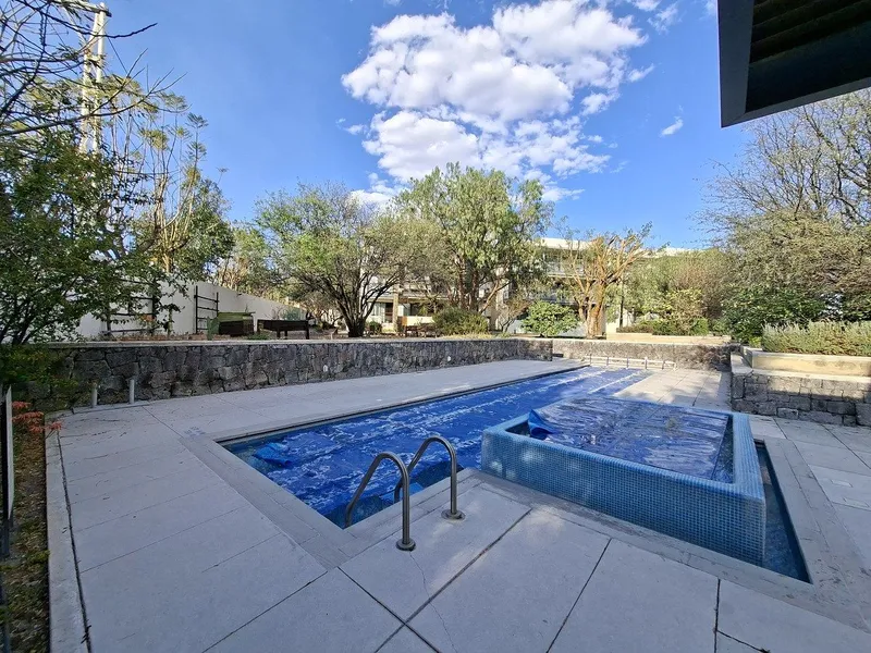 VENTA o RENTA / Departamento en Juriquilla. La mejor ubicación en un desarrollo autosustentable (innovador); El departamento forma parte integral de una amplia terraza cubierta que vestibula todos los espacios, permite una cómoda integración visual al jardín central y da acceso inmediato a las áreas verdes del conjunto. Consta de: Ámplia sala comedor con salida a la terraza. Cocina abierta equipara, con cubierta de granito, parrilla y horno eléctricos, lavavajillas y doble tarja. Ámplia recámara principal con walking closet, baño completo y salida a la terraza. Ámplia recámara secundaria con vestidor y salida a la terraza. Ámplia recámara de visitas con closet y baño completo. Un baño completo de uso compartido. Clóset de blancos. Cuarto de lavado a cubierto. 2 Autos a cubierto 1 auto a descubierto. El desarrollo cuenta con foto celdas solares para generar energía eléctrica, hermosos jardines endémicos, huerto, alberca y salón de usos múltiples, acceso controlado, seguridad privada 24/7. Mantenimeinto incluido en la renta. Disponible a partir del 1o de Abril... Excelente ubicación, a 10 minutos de la UVM, la UNAM, y el parque de la lagartija; a 15 minutos de Antea, HEB, Chedraui Selecto, y el Hospital Moscatti.