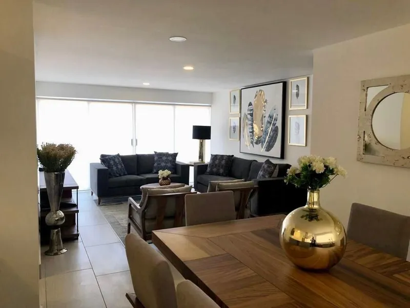 . Departamentos de 90, 100 y 120 m2. . 8 torres de 12 departamentos cada una, total 96 departamentos en un terreno de 20,000 m2. . Unicamente 3 niveles en cada torre. . Amplios e iluminados. Estancia sala comedor con muy buena distribución. En piso 2 y 3 con salida a balcón. .Techos de muy buena altura 2.40 m. . Cocina integral equipada y abierta para integrar el área social. . Cuarto de lavado con lavadero y boiler incluido, listo con las instalaciones para centro de lavado. . En los departamentos de 90 y 100 m2 con closet de visitas y closet de blancos. . En los departamentos de 90 m2, 2 recámaras y 2 baños completos. . En los departamentos de 100 y 120 m2, 2 y 3 recámaras con 2.5 baños. . Los baños se entregan con lavabo y cancel de vidrio templado. . 2 lugares de estacionamiento sin estorbarse. . Area acondicionada para mascotas. . Gimnasio equipado con 5 elípticas, 6 caminadoras, area de pesas, espacio para clases o para una cafetería con terraza. . Alberca semiolímpica con 3 carriles de nado, techada, 2 regaderas, vestidores H y M. . Chapoteadero. . 2 Calderas. . Salón de eventos con capacidad de 120 a 150 personas, area de cocina, baño de H y M, baño de servicio. . Terraza para eventos al aire libre. . 2 plantas de tratamiento para riego de 20,000 lts. . Area de composta. . Separación de basura. . Cisterna 50,000 lts. cada 2 torres. . Cada torre con 6 tinacos de 1,100 lts. . 2 tanques estacionarios de 500 lts. gas LP. . Los departamentos muestra se pueden vender amueblados. Departamentos de 100 m2: Desde $2,850,000.00 hasta $3,040,000.00 . Se aceptan créditos bancarios y COFINAVIT.