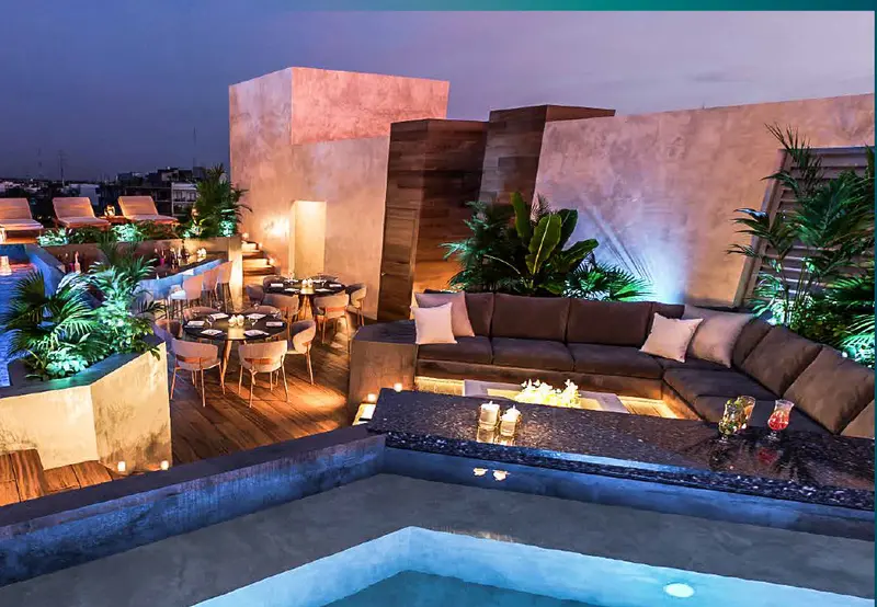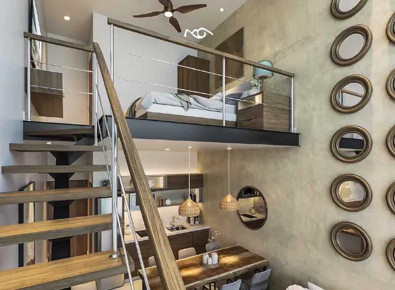 Fusion en tre modernindad y naturaleza. Elementosnaturales con lineas arquitectonicas con materiales tipicos de la region con entorno que le permita a todo aquel que visite Playa del Carmen, conecte con la Riviera maya en cuerpo y alma. Oasis de elegancia, con acabados de lujo de alta calidad . Lofts y Departamentos de 31 a 53 m2 Cocina con cubierta de granito Refrigerador Balcon jardin Cama king size Minisplit Wifi Amenidades: Alberca Grill Asadores skybar camastros lavanderias