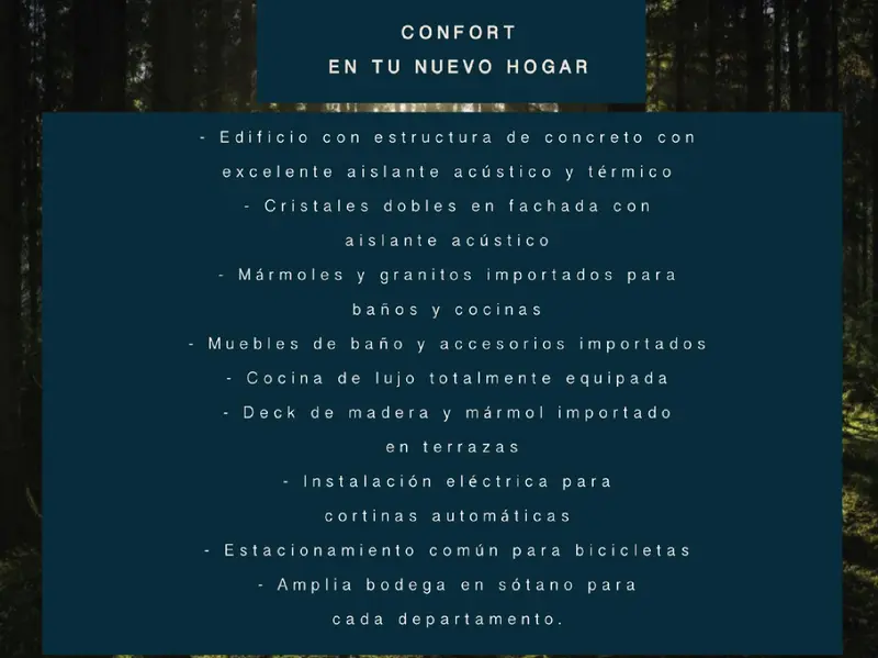 155 m2 interiores 2 recámaras terraza 15 m2 3 baños 1 medio baño Sala* Cocina Lavandería 2 Cajones de estacionamiento 25m2 Bodega 6m2 cuarto de servicio con baño completo Area total privativa 186m2