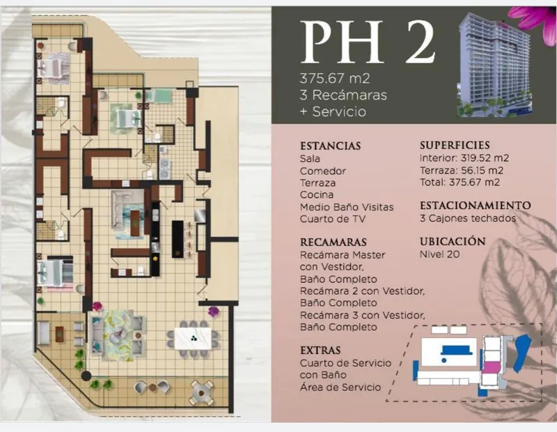 UN SOLO NIVEL CON UNA MASTER BEDROOM Y DOS RECAMARAS SECUNDARIAS CON VESTIDOR Y BAÑO COMPLETO CADA UNA, CUARTO DE SERVICIO CON BAÑO, ESTANCIA, SALA, TERRAZA, COCINA , COMEDOR, CUARTO DE TV, MEDIO BAÑO PARA VISITAS. 2 CAJONES DE ESTACIONAMIENTO AMENIDADES: ALBERCA GYM KIDS CLUB BUSSINES CENTER SPA FUTBOL* MUELLE. CON UN DISEÑO VANGUARDISTA AL AIRE LIBRE Y DE PRIMER MUNDO POR SUS ESPECTACULARES PAISAJES CON VISTA A LA MARINA,AQUI PODRAS ENCONTRAR REUNIDAS TODAS LAS OPCIONES GASTRONOMICAS Y DE ENTRETENIMIENTO .