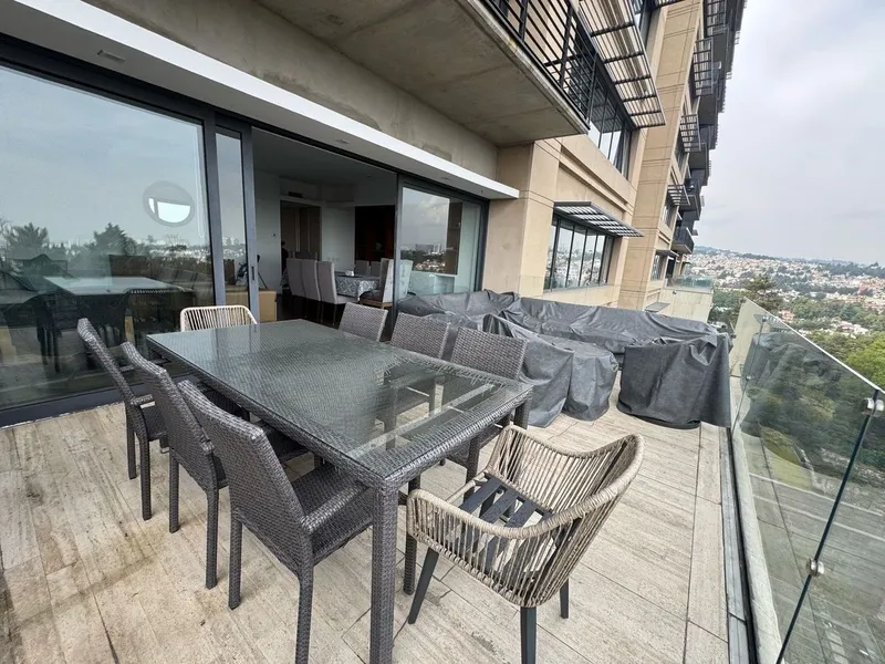 Tu hogar a primera vista . . . Proximidad a Rancho San Francisco Entorno natural rodeado de bosques, jardines senderos actividades a realizar al aire libre . -Dentro de un castillo medieval -Alberca climatizada, jacuzzi -Gimnasio -Cancha de tenis y futbol -Terraza -Biblioteca -Chimenea -Salón de adultos y teens club Departamento en torre 2 con elevador al piso -Terraza de 30 m -Sala -comedor, con vista -Cocina equipada cerrada -3 recamaras la principal con vestidor, y balcion -3.5 baños, -Sala de tv. y/o estudio -Cuarto de servicio -Cuarto de lavado -3 estacionamientos cubiertos -Bodega .