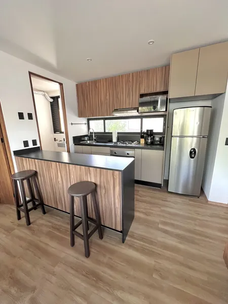 Departamento para estrenar: - Sala comedor - Balcón con pequeña terraza - Cocina - Área de lavado - 1 recámara con baño completo y closet Acceso directo del elevador Puerta hacia escalera de servicio No cuenta con estacionamiento