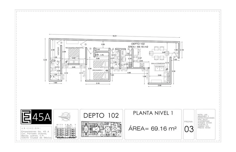 🏢 Departamento en preventa – Portales Oriente, Benito Juárez, CDMX Desarrollo EMPERADORES 45A Departamento en PREVENTA ubicado en la colonia Portales Oriente, Alcaldía Benito Juárez, Ciudad de México, dentro de un desarrollo habitacional de solo 12 departamentos. El Departamento 102, es interior, se localiza en el primer piso. 📐 Distribución y características del departamento * 2 recámaras con closet (La Recámara principal con vestidor y baño integrado) * 2 baños completos * Sala * Comedor * Cocina * Área de lavado * 1 cajón de estacionamiento 📊 Superficies * Superficie total: 69.16 m² 🏢 Características del edificio * Desarrollo de 12 departamentos * Roof garden común con asador * Elevador * Caseta de vigilancia con baño * Estacionamiento techado * Cisterna * Seguridad 24 horas * El desarrollo se encuentra cercano a vialidades principales, transporte público y servicios urbanos. 🧾 Forma de pago * $20,000 MXN de apartado * 10% de anticipo a la firma del contrato * 10% diferido a la entrega * 80% a la firma de escritura pública 🗓️ Fecha de entrega * Junio de 2026 💳 Opciones de financiamiento * Créditos bancarios * INFONAVIT * COFINAVIT * Pregunar por otras opciones ⚠️ Consideraciones importantes (NOM-247) * Las imágenes mostradas son referenciales y pueden presentar variaciones respecto al producto final conforme al proyecto autorizado. * El precio no incluye impuestos, derechos, gastos notariales, avalúos ni costos derivados de créditos hipotecarios. * El precio no incluye muebles, accesorios ni elementos decorativos mostrados en renders o imágenes. * La información está sujeta a cambios sin previo aviso y no constituye una oferta vinculante. * La operación se formalizará conforme a la documentación contractual correspondiente. 📞 Solicita información y agenda una visita para conocer el proyecto. Aprovecha el precio de PREVENTA