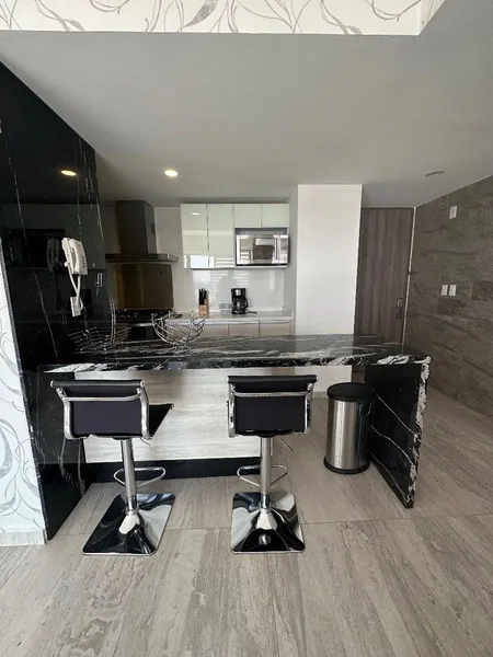 EN VENTA departamento ubicado en Insurgentes casi enfrente de la Estación el Olivo, cerca de plazas comerciales como Manacar , La Comer y gran variedad de restaurantes. El complejo residencial cuanta con Valet Parking, Lobby , Vigilancia, áreas comunes equipados como: - Gimnasio - Bussines Center - Alberca - Mezzanine - Salas de estar El departamento consta de dos habitaciones la principal con balcón con doble puerta, closet y baño. La secundaria con closet, baño completo. La sala y comedor son amplios y se complementa con un balcón con vista exterior muy bella. Adicional la cocina es abierta y tiene barra y periqueras muy prácticas para el día a día. Es un departamento muy bien pensado y diseñado.
