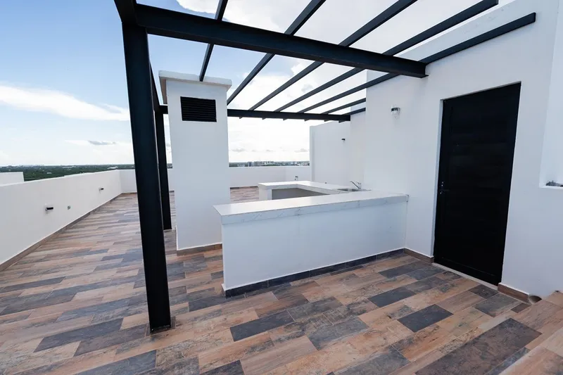 PENTHOUSE EN VENTA EN CANCUN Hermoso departamento tipo Pent House, ubicado en Azulumi, refugio de Exclusividad, lujo y confort en el corazón de Cancún a unos metros de avenida Huayacan, con mayor crecimiento y plusvalía en donde todos los servicios están totalmente accesibles. CARACTERÍSTICAS: • Superficie habitable 200 m2 • Superficie total de 353 m2 • Doble altura • 3 niveles NIVEL 1: • 2 recámaras • Cada una con su baño • Closets de blancos • Con walking clóset PLANTA BAJA: • Recámara principal con baño completo con doble lavabo y walking clóset • Medio baño de visitas • Sala • Comedor • Barra • Cuarto de lavado con calentador ROOF TOP: • Roof con barra y cocineta • Jacuzzi con vista a zona hotelera • Baño • Terraza amplia • 3 lugares de estacionamiento • Bodega AMENIDADES: • Lobby con seguridad 24/7 • Business Center • Área Pet Frienly • Gimnasio • Alberca y Chapoteadero • Asoleadero • Salón de eventos • Áreas Verdes y Vista a la Laguna • Asadores • Wifi en áreas comúnes • Baños y Vestidores Precio de Venta $11,100,000.00 M.N.