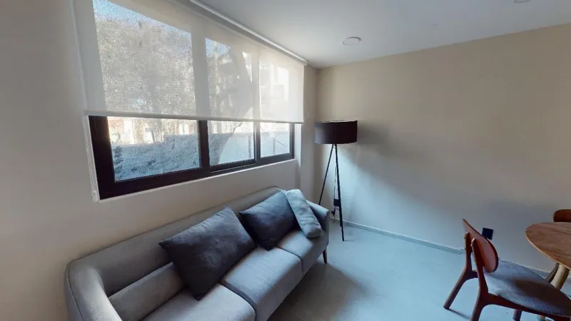 Ubicado en la colonia Santa María la Ribera, sobre la Calle de Nogal, a solo una cuadra del Circuito Interior, Punto Nogal cuenta con 9 departamentos distribuidos en cuatro niveles habitacionales. Las superficies de los departamentos van desde los 42 m2 hasta los 108 m2. El edificio cuenta con 13 cajones de estacionamiento y un roof de uso común para todos los habitantes. Departamento de 1 habitación, 1 baño completo, sala, comedor y cocina. Cuarto de lavado y 1 estacionamiento. 67 m2 Habitables más 5 m2 de Balcón y 40 de Roof Garden privado Entrega en 2024 Conoce más en *