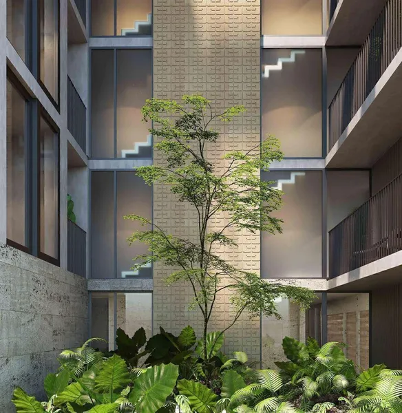 La Condesa es una de las zonas con hermosas calles arboladas, parques verdes y una arquitectura única que combina lo moderno con lo clásico. La colonia ofrece fácil acceso a los principales destinos de la ciudad. El proyecto de Nuevo León 219 consta de 30 unidades distribuidas en 8 niveles, además de un local comercial independiente. Todos son departamentos de 2 recámaras de 91 a 149 m2. Roof top con amenidades como área de coworking, área lounge, asadores y fire pit. Valet parking. Departamento exterior de 2 habitaciones, 2 baños completos, sala, comedor y cocina. 91 m² habitables 6 m² de balcón Conoce más en *