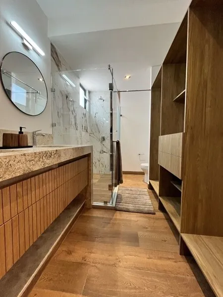 Desarrollo novedoso de tan solo 23 departamentos boutique, que integra elementos naturales en espacios habitables únicos, en armonía con la naturaleza. Los elementos naturales juegan y se integran como parte de las fachadas, las vistas y las áreas comunes. Esta característica permite que el edificio se integre mejor al entorno y reduzca su impacto ambiental. Departamentos del segundo a cuarto piso. Dos recámaras, la principal con clóset vestidor y baño, y otro baño completo para la secundaria y visitas. Sala comedor, cocina con barra desayunador, cuarto de lavado, Patio*, 2 lugares de estacionamiento. 128.29 m2 habitables. 1.8 de balcón. Accesos automatizados Sala de juntas Oficina privada Gimnasio Roof top Departamentos personalizables