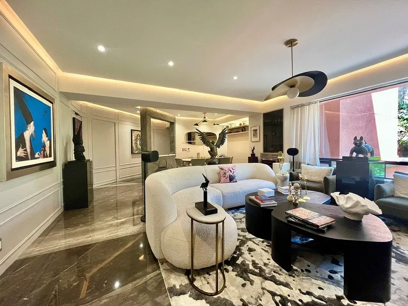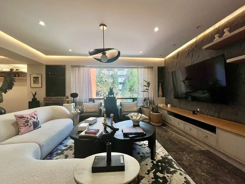 Departamento recién remodelado con acabados de lujo y muy buen gusto. 2 recámaras cada una con su baño, baño completo para visitas, estudio, sala, comedor, cocina cerrada, lavandería, estacionamiento para 2 autos con instalación para auto eléctrico. 130 metros, piso 3. Aire acondicionado y calefacción, ventanas nuevas de doble vidrio Edificio con vigilancia, elevador principal y elevador de servicio. 19 años de edad. Mantenimiento mensual $2,300 pesos.