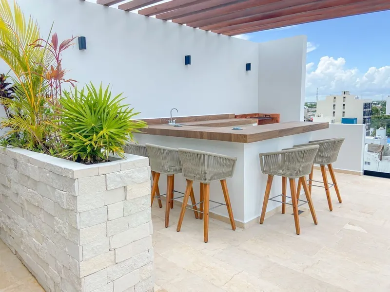 (English below) Departamentos de lujo de 1 habitación en venta en Playa del Carmen Ubicación: Playa del Carmen, Centro Referencias: A 5 minutos de la quinta avenida, en el corazón de Playa del Carmen Número total de unidades: 34 Piso: desde 33 m2 / 355 SqFt Recámaras: 1 Baños: desde 1 Fecha de entrega: inmediata. HOA fee: MXN 2,500/mes Precio: USD 130,000 Características y amenidades: Sala de estar Comedor Cocina Habitación Baño completo Clóset Amueblado y equipado Acceso a amenidades que incluyen: Piscina infinita Lobby Techo Bar y parrilla Seguridad 24/7 Estacionamiento subterraneo Departamentos tipo estudio y penthouses de una habitación, dos baños y piscina disponibles. *Precios de inmuebles sujeto a cambio sin previo aviso, actualización mensual. Comprobar disponibilidad. *** La información gráfica y escrita proviene de una fuente confiable, sin embargo, puede haber variaciones en estado de conservación u otros aspectos desde el momento en el que el inmueble fue listado hasta el momento de la visita del interesado. **** De conformidad con lo establecido en la NOM-247-SE-2022 Luxury 1-bedroom apartments for sale in Playa del Carmen Location: Playa del Carmen, Downtown References: 5 minutes from fifth avenue, in the heart of Playa del Carmen Total number of units: 34 Floor: from 33 m2 / 355 SqFt Bedrooms: 1 Bathrooms: from 1 Delivery date: immediate. HOA fee: MXN 2,500* Price: From MXN 2,360,700* / USD 127,000* Features and amenities: Living room Dining room Kitchen Bedroom Closet and bathroom Furnished and equipped Access to amenities including: Infinity pool Lounge area Rooftop Bar and grill 24/7 security Underground parking Studio typologies and penthouses with one bedroom, two bathrooms and pool available. *Real estate prices subject to change without prior notice, monthly update. Check availability. *** The graphic and written information comes from a reliable source, however, there may be variations in state of conservation or other aspects from the moment the property was listed until the moment the interested party visited. ****Provisions of NOM-247-SE-2022