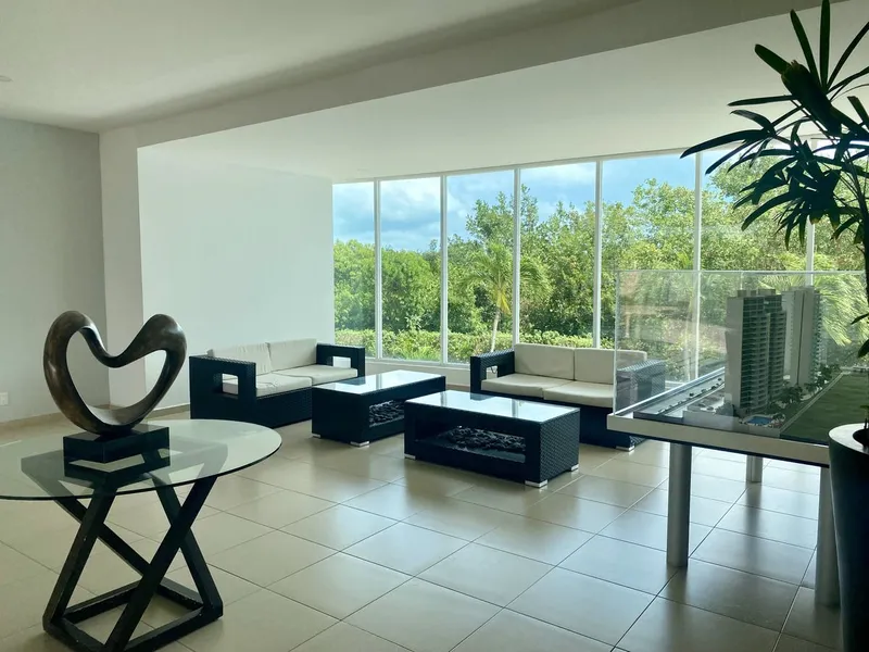 Exclusivo Penthouse amueblado en renta en Isola, Puerto Cancún Espectacular Penthouse de 252 m2 ubicado en uno de los mejores Residenciales de Puerto Cancún "Isola Cancún". Cuenta con 3 recámaras cada una con baño completo, las 3 recámaras principales con vestidor, y la cuarta recámara es mas pequeña y puede ser usada como cuarto de sevicio y cuenta con closet. La recámara principal cuenta con un baño completamente renovado en accesorios, vestidor, jacuzzi y un pequeño balcón. El departamento tiene además una amplia terraza con vista al mar, campo de golf, y a la ciudad, sala, comedor, cocina equipada y remodelada por completo, con campana y horno, parrilla eléctrica ,refrigerador , lavadora de platos, cubierta blanca, monomando y electrodomésticos, Cuarto de lavado y se entrega con lavadora y secadora marca Miele, cortinas interiores. La puerta principal tiene chapa de código numérico y finalmente un cajón techado para estacionamiento. Entre las amenidades que podrá disfrutar se incluye: dos piscinas con camastros, vigilancia y acceso controlado las 24 horas, lobby y área de recepción, estacionamiento cubierto, spa con vapor y sauna, gimnasio, centro de negocios, salón de eventos, salón de juegos y canchas de paddle tenis. Piso 19 Recien remodelado Renta $ 80,000.00 mensuales Se renta por un año ------------------------------------------------------------- Exclusive furnished Penthouse for rent in Isola, Puerto Cancun Spectacular 252 m2 Penthouse located in one of the best Residential in Puerto Cancun "Isola Cancun". It has 4 bedrooms each with a full bathroom, the 3 main bedrooms with walk in closet and the fourth with closet. The main bedroom has a bathroom completely renovated with accessories, Jacuzzi, and a small balcony. The apartment also has a large terrace with views of the sea, golf course, and the city, living room, dining room, fully equipped and remodeled kitchen, with hood and oven, electric grill, refrigerator, dishwasher, white cover, mixer, and home appliances, Laundry room and comes with a Miele brand washer and dryer, and interior curtains. The main door has a numerical code plate and finally a covered parking space. Among the amenities that you can enjoy are our two swimming pools with lounge chairs, 24-hour surveillance and controlled access, a lobby and reception area, covered parking, a spa with steam and sauna, a gym, a business center, an event room, game room, and paddle tennis courts. There is a place to live in harmony and escape from the everyday world in Puerto Cancun, one of the most important developments in the Mexican Caribbean: Isola luxury apartments, a complex made up of five spectacular twenty-story towers adorned by beautiful views of the sea and the ocean. golf course. Despite being an exclusive paradise surrounded by beautiful green areas, Isola is one step away from all the most important services and points in the city. 19th Floor Newly Remodeled Rent $ 80,000.00 pesos ONE-YEAR