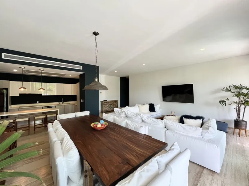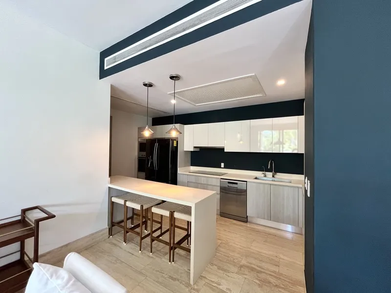 Descubre la combinación perfecta de lujo, comodidad y ubicación en este espectacular departamento en renta en Ka'Anali, Puerto Cancún. Diseñado para quienes buscan un estilo de vida sofisticado, este hogar ofrece amplios espacios, acabados de alta gama y acceso a amenidades exclusivas. Características del departamento: - 2 habitaciones – Recámara principal con amplio walk-in closet. - 2 baños completos con acabados de lujo. - Cocina totalmente equipada con electrodomésticos de alta calidad. - Aire acondicionado, cortinas y blackouts en todas las áreas. - Amplia terraza con grill y comedor exterior, ideal para disfrutar del clima caribeño. - Jardín privado, perfecto para relajarse o compartir con la familia. - Cuarto de lavado para mayor comodidad. - 2 estacionamientos subterráneos con acceso controlado. - Incluye mantenimiento e internet en el precio de la Renta. Amenidades Exclusivas en Kaanali Puerto Cancún: - Alberca y solárium para disfrutar del sol y la brisa marina. - Gimnasio y sala de masajes para un estilo de vida saludable. - Seguridad 24/7, acceso controlado y privacidad garantizada. Vive en el corazón de Puerto Cancún, rodeado de exclusividad y una de las mejores ubicaciones de la ciudad. Medida total: 357.58 m2 Interior: 168.41 m2 Terraza: 44.34 m2 Garden: 143.83 m2 ¡Contáctanos hoy mismo para agendar una visita y enamórate de tu próximo hogar!