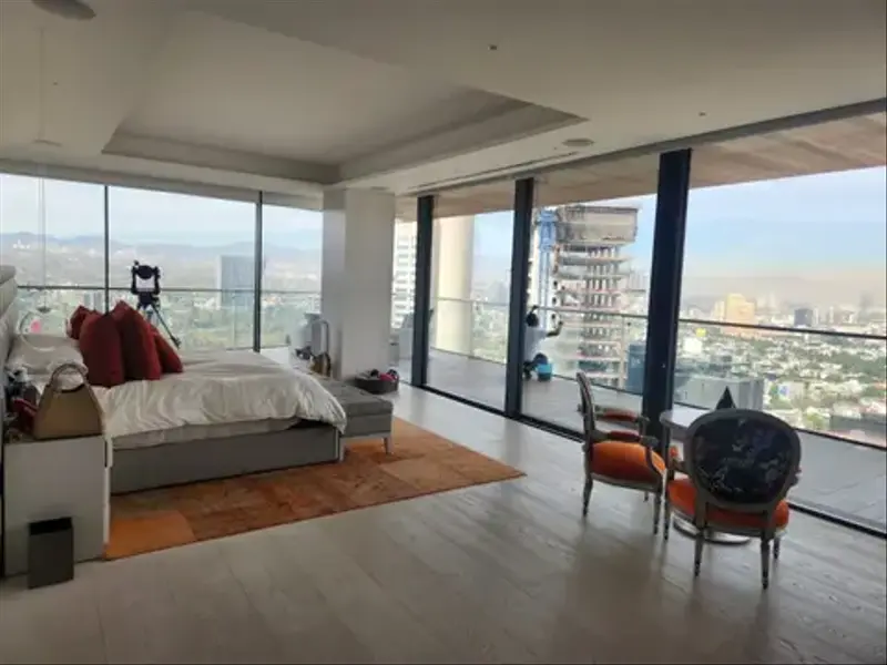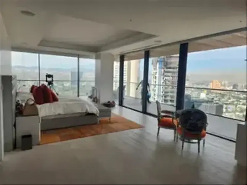 Recámara principal con dos baños, dos vestidores, dos regaderas 2 suites con vestidor y baño Terraza con salida desde sala, comedor, recámara principal Espectacular vista de la ciudad Sala Comedor Cocina con electrodomésticos Cuarto de servicio Lavanderia 1/2 baño de visitas Amenidades Alberca Restaurante SPA Restaurante Gimnasio Jardines Salón de adultos Bussiness center