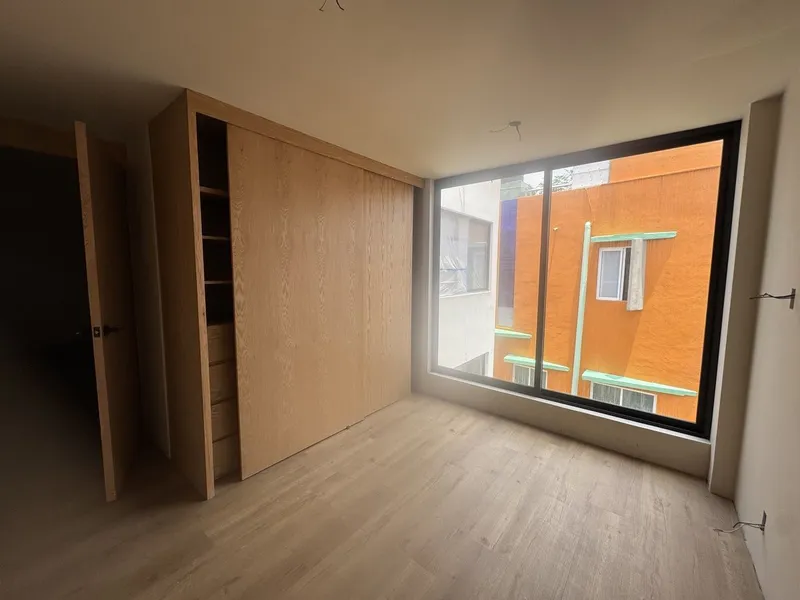 Departamento en venta en Colonia San Miguel Chapultepec, en calle céntrica a sólo 2 calles de Colonia Condesa. Calle Pedro Antonio de los Santos. Departamento que forma parte de un edificio rehabilitado con un total de 10 unidades. Ubicado a sólo una cuadra de Colonia Condesa, a dos calles del Bosque de Chapultepec, ideal para inversionistas o para quién este en búsqueda de su primera inversión. Departamento interior con amplios espacios. Al ingresar al departamento podrás disfrutar de la estancia comedor cocina abierta, la recámara principal es muy amplia, con clóset,’ la segunda recámara cuenta con un balcón con vista interior. Cuenta con 2 recámaras, un baño completo y un balcón en la recámara secundaria. Departamento con un total habitable de 51m2 + 5m2 balcón. Generales: Total: 56m2 Habitables: 51m2 Balcón: 5m2 Recámaras: 2 1 Baño completo Bodega No cuenta con estacionamiento Amenidades: Roof Garden común Gimnasio Precio de Pre venta: $3,531,000 Entrega Agosto 2025