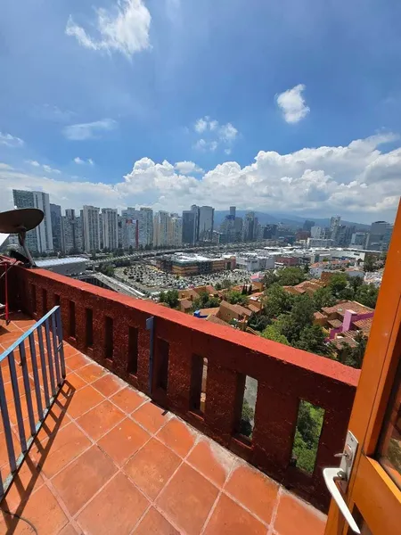 Santa Fe, en el Condominio Antigua, con doble acceso por Vasco de Quiroga y la Carretera México Toluca. Bonito y moderno penthouse en dos niveles remodelado totalmente de 310m2 con balcones y terracita. Sala con barra, amplio comedor, cocina con refrigerador y lavavajillas italiana, cuarto de servicio y lavado. 3 recámaras, 2.5 baños. Vista bonita a la ciudad. Calientito e iluminado. Terminados modernos, baños de mármol, carpintería de excelente calidad, calefacción eléctrica. 2 estacionamientos. Bodega. Áreas comunes: amplios jardines con juegos infantiles, salón de fiestas, paddle, y gimnasio. El Condominio tiene dos accesos vehiculares y peatonales: Carretera Mexico-Toluca y Vasco de Quiroga. Seguridad.