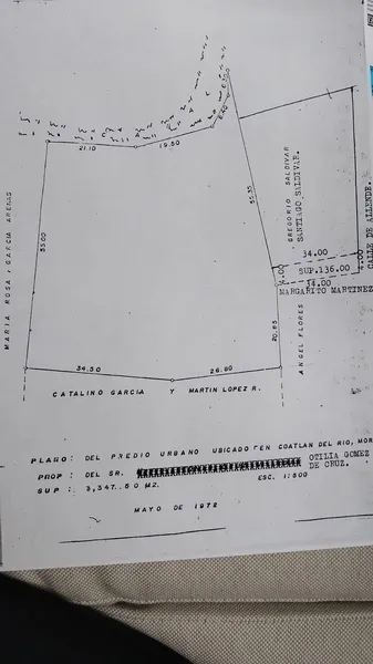 Terreno de 3,347.50 m2 , en calle Allende, Colonia Centro, Poblado Coatlán del Río, Morelos. Con todos los servicios; agua potable, energía eléctrica, alumbrado público, banquetas, pavimento de concreto. Uso de suelo habitacional. Cuenta con una casita de 141.570 m2 de 2 niveles. Tiene huerta con varios árboles frutales; chicozapote, mangos, mamey plátanos.