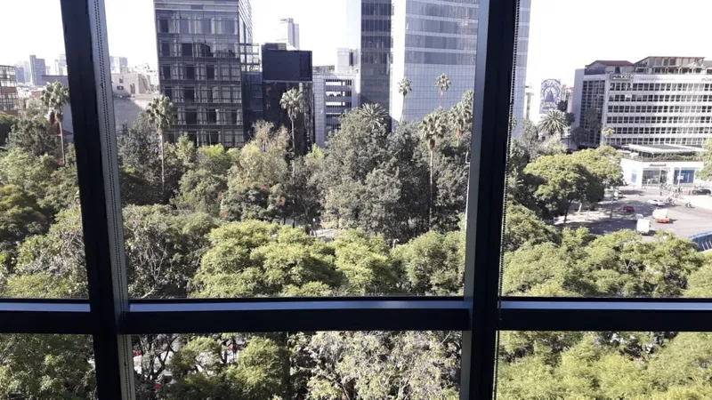 Oficina acondicionada Espacio abierto para adecuar a sus necesidades Precio por m2 27.50 USD mantenimiento 100.53 X m2 1 lugar de estacionamiento cada 40 m2 rentados (50% dentro del edificio y 50% estacionamiento externo) Edificio de 20 niveles 6 elevadores 1 elevador de carga Seguridad 24/7 Super ubicado en el centro de la Cdmx, espectacular vista al Ángel de la Independencia.