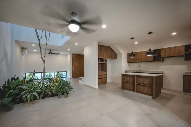Ceres City Homes es una privada de 10 exclusivos townhouses con amenidades, diseñado para resaltar los mejores momentos en familia. La tranquilidad de vivir en un complejo seguro que integra espacios de recreación para niños y adultos, para disfrutar y crear un ambiente familiar único y fascinante Con una ubicación privilegiada, al norte de la ciudad, estarás a menos de 10 minutos de la Universidad Marista, Modelo y Anáhuac Mayab, llegar a plazas como La Isla, The Harbor y Altabrisa así como el Hospital El Faro o StarMédica te tomará unos 15 minutos, además, se encuentra a unas cuadras del Periférico de Mérida con fácil acceso a desarrollos tanto comerciales como residenciales y a la Carretera a Progreso desde donde en menos de 30 minutos podrás estar disfrutando de las hermosas costas yucatecas, definitivamente la mejor elección para tu nuevo hogar. PLANTA BAJA Sala Comedor Cocina con alacena 1/2 baño de visitas Alberca Terraza Jardín privado Jardín interior Cuarto de servicio con baño completo Garage techado para 2 vehículos PLANTA ALTA 3 recámaras ( La principal con closet vestidor) 3 Baños FECHA DE ENTREGA: Inmediata EQUIPADO CON: Cisterna Biodigestor Sistema de Riego Tinaco AMENIDADES: Cancha de fútbol 7 Área grill Área de juegos infantiles Estacionamiento de visitas Family terrace & bar Baños Bancas contemplativas TAMBIÉN CUENTA CON: Portón eléctrico Acceso peatonal inteligente Cámaras de vigilancia Estacionamiento techado *Precios y disponibilidad sujetos a cambio sin previo aviso. *Las imágenes mostradas son solo para fines ilustrativos.