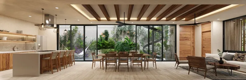 Nuevas casas de lujo con amenidades dignas de un resort Enclave es un nuevo proyecto con cinco casas de lujo en Pure Tulum dentro del exclusivo residencial de Aldea Zamá en Tulum. El complejo está rodeado de selva tropical y se encuentra a tan solo minutos de las resplandecientes playas de arena blanca, las famosas ruinas mayas y el centro de Tulum. Situada a mitad de camino entre la playa y la carretera, Aldea Zamá ofrece la ubicación ideal para aprovechar todo lo que este destino turístico tiene para ofrecer. Este hermoso desarrollo ofrece tres modelos diferentes con 3 a 5 habitaciones. Todas las residencias de dos o tres pisos incluyen una suite con opción de bloqueo en el rooftop con alberca para ocupación adicional y potencializar sus ingresos. Ofrecen una amplia distribución abierta con terraza y jardín privado con alberca. La recámara principal cuenta con terraza y un lujoso baño principal con tina. Los pisos son de mármol, y la barra en la cocina de cuarzo, las puertas y closets están hechos de madera de origen local. Se ofrecen a la venta sin muebles pero equipados con aire acondicionado. Huéspedes y propietarios pueden disfrutar de todas las amenidades de un resort de cinco estrellas, incluyendo alberca con carril para nadar, camastros, gimnasio, área de hamacas, cafetería y acceso preferencial al club de playa. El complejo es seguro y protegido con acceso controlado y seguridad las 24 horas. También ofrece áreas verdes, sistema de apertura por medio de tarjeta, programa de reciclaje, Wi-Fi en las áreas comunes y elevador. Estas casas son perfectas para rentas vacacionales o como residencia durante todo el año. Comuníquese con uno de nuestros agentes hoy mismo para conocer las diferentes opciones y los precios de preventa.