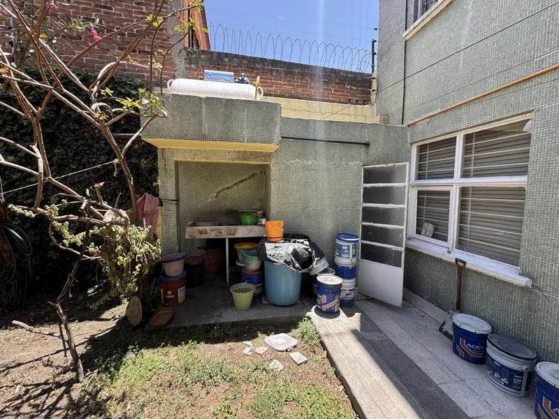 Casa con dos frentes. Con 347m2 de terreno y 343m2 de construcción encontramos una propiedad en excelente estado de conservación con amplios espacios para remodelar a tu gusto. Distribuida en 3 niveles En planta baja encontramos un amplia sala comedor. Cocina cerrada con atencomedor y gran espacio de alacena. Una habitación con baño completo y clóset. Un despacho En primer nivel encontramos la recámara principal con un gran baño con tina Dos recámaras adicionales que comparten baño Un estudio Un patio En el tercer nivel hay dos cuartos de servicio, Con baño completo Dos bodegas y un lavadero. Gas estacionario Cisterna 5,000litros Jardín de aproximadamente 100metros Dos lugares de estacionamiento techado Excelente terreno con uso de suelo Habitacional* Densidad Z Vías principales Andrés Molina Enríquez, Viaducto Rio de la Piedad, Calz. De la Viga, Plutarco Elías Calles, Coruña. Metro la Viga a 6 cuadras.