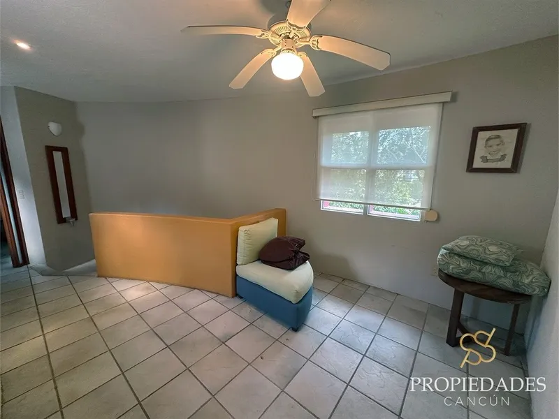 Amplia, funcional y equipada para tu comodidad Ubicada en una de las zonas residenciales más exclusivas y céntricas de *, esta casa ofrece un terreno excepcionalmente amplio, con espacios interiores bien distribuidos y un entorno ideal tanto para la vida familiar como para trabajar desde casa o recibir invitados. Planta Baja: -Gran área de sala y comedor con techo de palapa, que aporta frescura y estilo caribeño -Cocina integral con acceso al área de lavado -Cuarto de lavado independiente -Baño de visitas -Bodega bajo la escalera -Dos estudios u oficinas versátiles, perfectos para home office o habitaciones extra -Hermoso jardín trasero con alberca privada -Estacionamiento techado con capacidad para 12 autos -Cuarto de servicio con baño completo -Bodega para almacenar en el exterior Planta Alta: -Sala de TV o área familiar abierta -Dos recámaras secundarias con clóset, que comparten un baño completo -Recámara principal muy amplia, con una acogedora sala de estar privada, baño completo y excelente iluminación Extras que hacen la diferencia -Aires acondicionados en varias áreas -Cortinas anticiclónicas instaladas -Ventiladores de techo -Paneles solares para ahorro energético -Sistema de seguridad con cámaras y alarma Esta propiedad lo tiene todo: amplitud, funcionalidad, equipamiento completo y una ubicación privilegiada dentro de la ciudad. Perfecta para quienes buscan comodidad, privacidad y un entorno seguro. Contáctanos hoy mismo para agendar tu visita y conoce esta excelente opción en SM 17, *. ¡Te encantará!