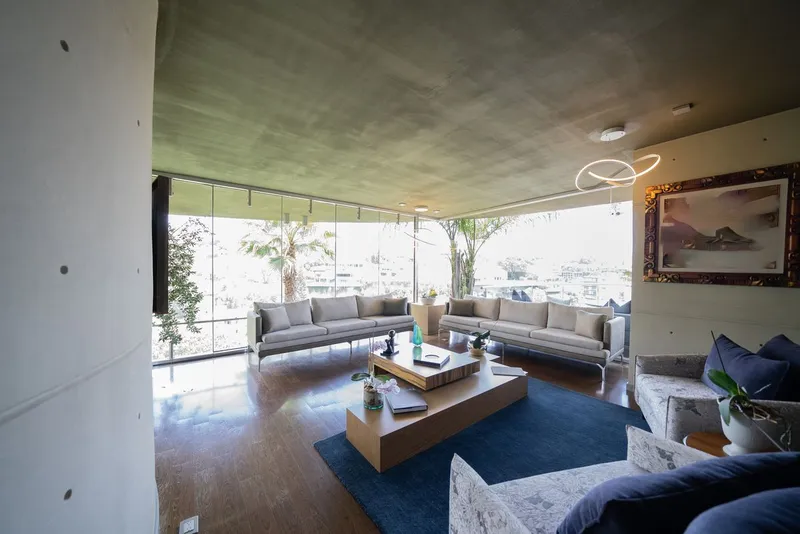 Descubre esta increíble residencia ubicada en una de las calles más exclusivas de Bosques de las Lomas! Con una arquitectura única y moderna, la propiedad destaca por su impresionante tragaluz central que inunda de luz natural todos sus rincones. Esta majestuosa casa ofrece vistas panorámicas de todo Bosques y está distribuida en tres niveles, conectados por un elegante elevador. La propiedad se asienta en un terreno de 906 m² y cuenta con una construcción de 2,434 m². Dispone de cinco amplias recámaras, cada una con baño completo y walk-in closet. Además, incluye un cuarto de servicio, un cuarto para el chofer, un área de juegos y un hermoso jardín. Para mayor comodidad y seguridad, ofrece espacio para ocho vehículos y cuenta con una caseta de vigilancia. ¡No pierdas la oportunidad de vivir en esta joya arquitectónica que combina lujo, confort y seguridad en uno de los mejores barrios de la ciudad.