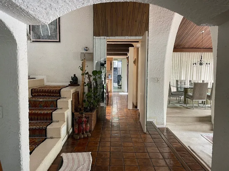 Linda casa estilo Mediterraneo en venta en Bosques de las Lomas, consta de 3 recamaras cada una con baño, con opción a una 4a, la principal con jacuzzi que tiene vista al jardín, sala con chimenea y comedor, oficina con baño, sala de TV, cocina integral con amplia despensa, cuarto de servicio estacionamiento para 3 autos, bodega de buen tamaño, y una terraza de aproximadamente 150 m2 que sale de la sala para que pongas tu asador y mesa con sillas y disfrutar de un lindo jardín lateral, o para que tus peques anden en patineta o triciclo. La casa está muy cerca de Fuente de Lilas y de el centro comercial de Duraznos.