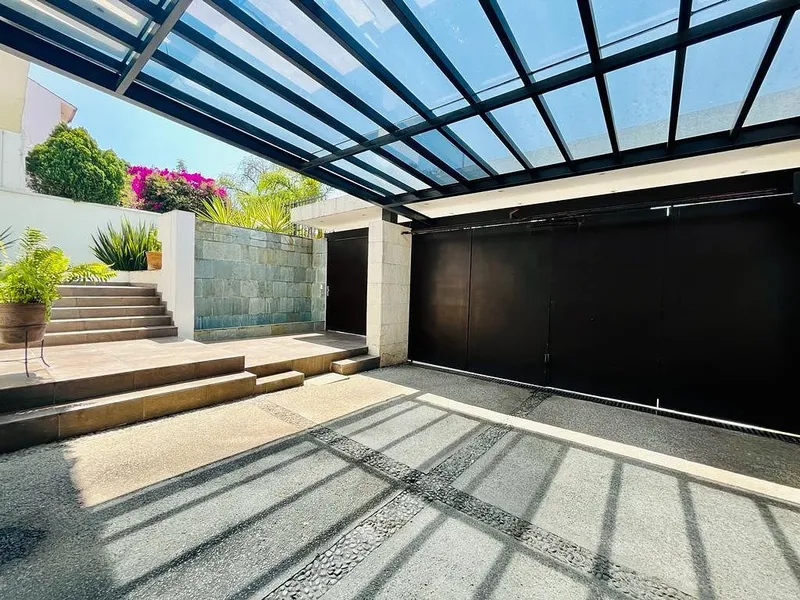 Estupenda Casa en Venta en el Corazón de La Herradura Exclusiva residencia ubicada en calle cerrada con caseta de vigilancia y acceso controlado las 24 horas, que ofrece privacidad, seguridad y una ubicación inmejorable en una de las zonas más cotizadas de La Herradura. La propiedad ha sido remodelada con excelentes acabados, presentando un diseño moderno, funcional y con una distribución inteligente que maximiza cada espacio. En la planta baja, un elegante recibidor da paso a una amplia estancia que se integra armoniosamente con la terraza techada, ideal para reuniones sociales o momentos de descanso. La cocina integral, totalmente equipada y con isla desayunador, conecta con un acogedor jardín y ofrece espacio para un antecomedor de gran tamaño. En este nivel también se encuentra un estudio o sala de TV, medio baño de visitas y alacena. En la planta alta se localiza una sala de TV familiar, la recámara principal con balcón, amplio vestidor, baño completo y tina, así como tres recámaras secundarias, todas con balcón, vestidor y baño completo. Gracias a sus ventanales y diseño arquitectónico, la casa disfruta de excelente iluminación y ventilación natural en todas sus áreas. Complementan la propiedad un área de lavado con acceso independiente, cuarto de servicio con baño, bodega y tres lugares de estacionamiento. Al frente, una elegante cascada y jardín aportan un toque distintivo y sofisticado desde el primer momento.