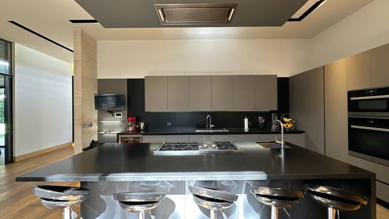 Increíble casa moderna en jardines del pedregal con un diseño arquitectónico muy innovador y con acabados de lujo. Esta casa esta ubicada en una de las zonas más exclusivas del sur de la ciudad. Cuenta con acabados de madera, mármol Wood Stone y Pietra Grey, y herrería. Tiene 979m de terreno y 1,442m de construcción. Esta dividida en tres plantas que se comunican por escaleras o un elevador. En la parte de arriba se encuentran con 4 recamaras con baño completo y walk in clóset y balcón perimetral, un family room, y un gimnasio. En la plata principal podemos encontrar la sala, comedor, cocina, cuarto de TV, que conectan con el jardín y la terraza. La terraza tiene Narilla tepanyaki, maquina de hielos, bocinas, chimenea, y bar. En la parte de abajo encontramos el área de juegos, una cava increíble, un cine para 12 personas, baños, cuarto de servicio, 3 bodegas, cuarto de vigilancia y estacionamiento para 8 coches. Toda la casa cuenta con: instalación inteligente control 4, sistema de audio, cortinas eléctricas, alarma ADT, cerca electrificada, paneles solares, aire acondicionado, calefacción, y sistema de riego por aspiración.