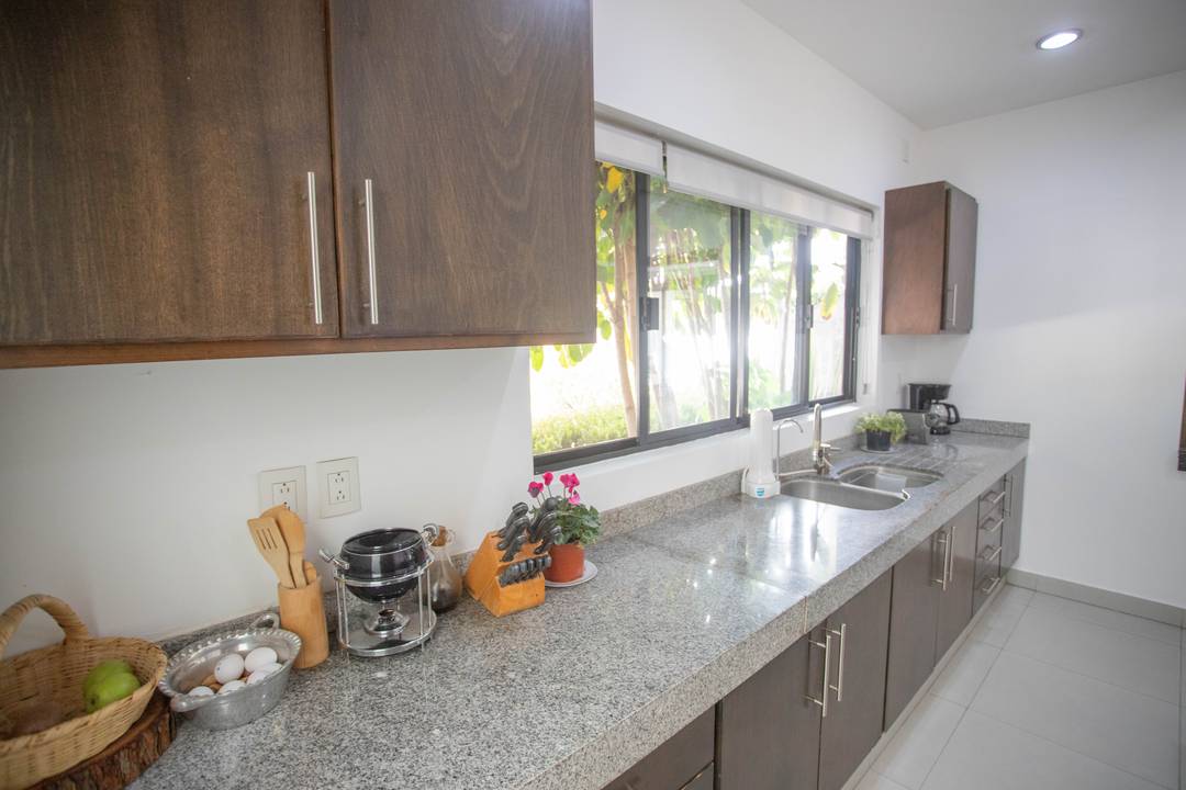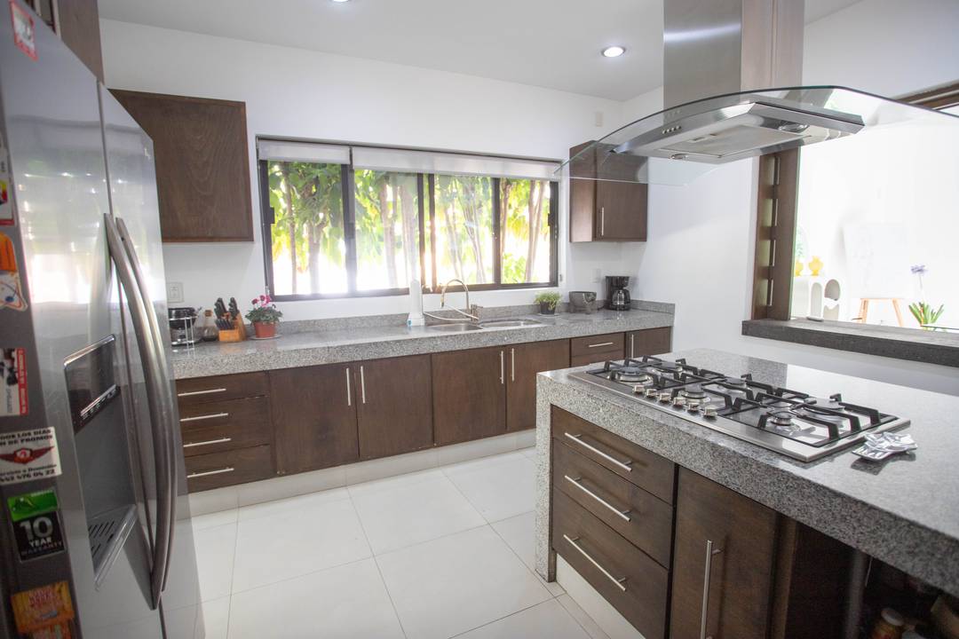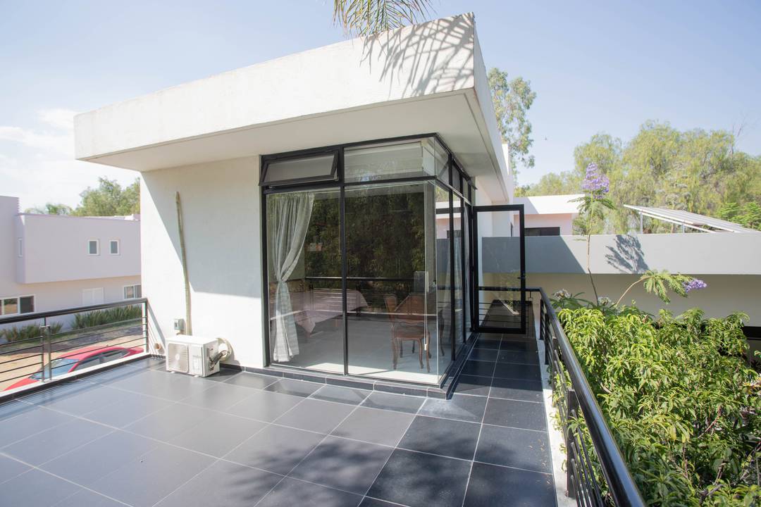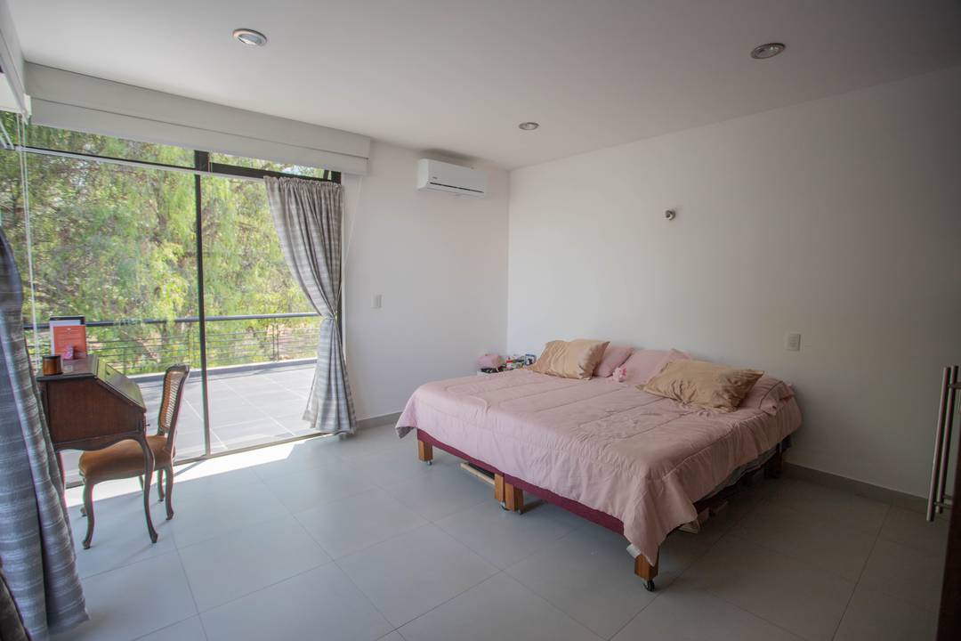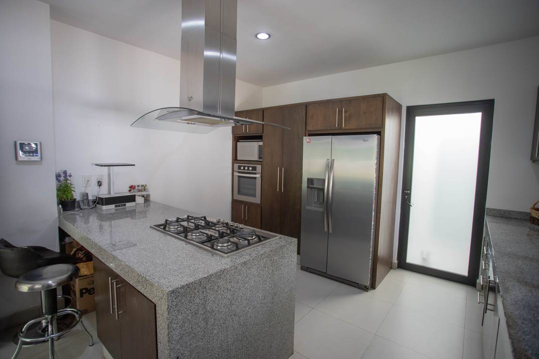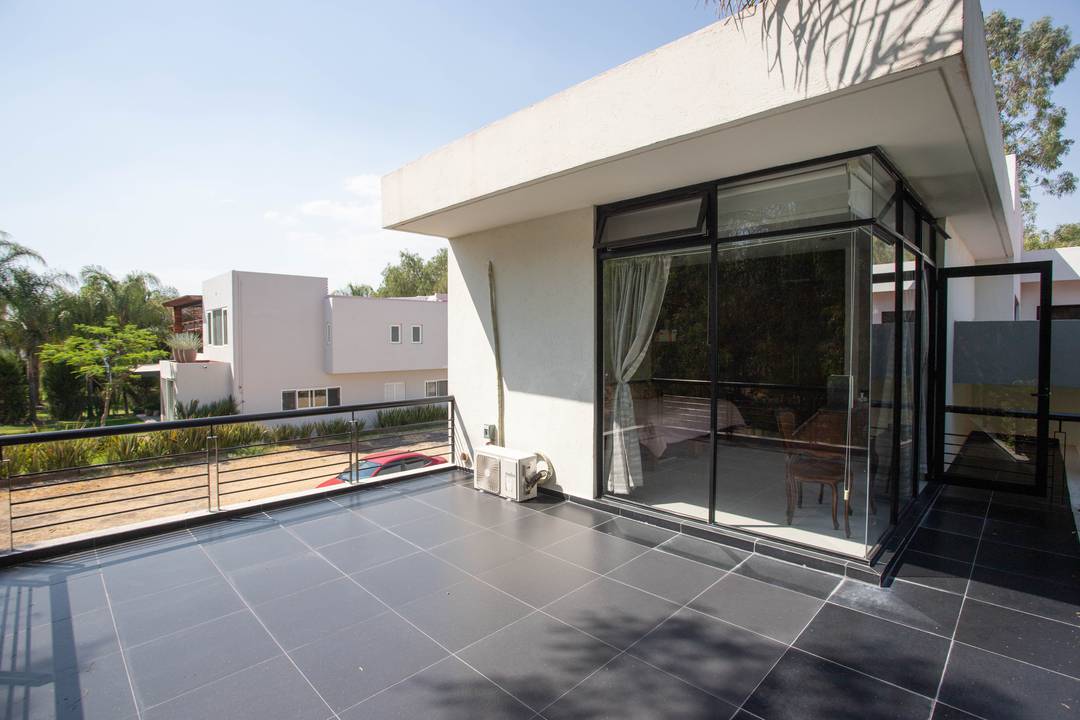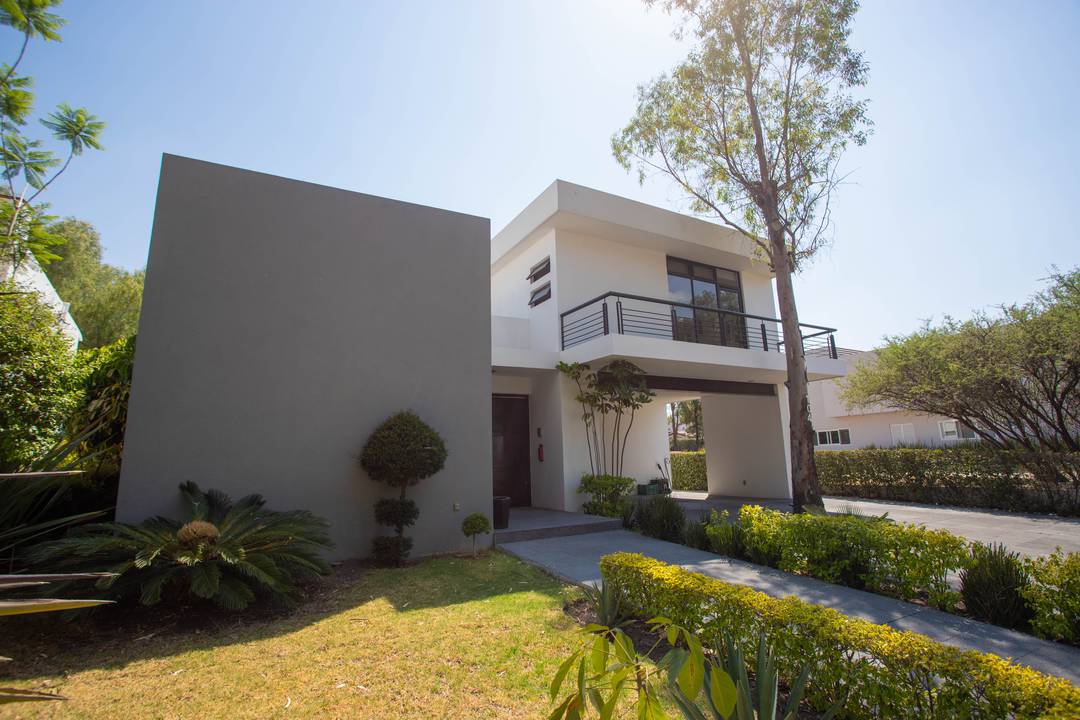 Venta de casa en Querétaro adentro de Fraccionamiento Golf Polo & Country Club Balvanera con 6000 hectáreas de bosque lo que lo hace uno de los pulmones de la Ciudad, Casa Club, 2 hoteles, Canchas de tenis con las mejores clínicas de la Ciudad así cómo las de Golf, Torneos de equitación y Polo a nivel Nacional e Internacional, huerto y Circuito para caminar o andar en bicicleta. La residencia consta de dos niveles: EN PLANTA BAJA Recibidor Recámara principal con aire acondicionado, vestidor baño completo, estudio y biblioteca con vista al jardín maduro y al bosque. Sala y Comedor abiertos con ventanales corredizos que dan a la gran terraza con su inigualable vista al bosque de Balvanera con aire acondicionado frío-calor INVERTER ahorrador de luz eléctrica. Muro llorón Jardín maduro Cocina súper equipada con isla central, barra y plancha de granito, horno de gas empotrado, refrigerador de doble puerta, Microondas y alacena. Área de secado techada Garaje techados Bodega interior y dos bodegas externas PLANTA ALTA 2 Amplias habitaciones con baño completo y closet una con balcón la otra con gran terraza y aire acondicionado ambas con vista al bosque Estudio o sala de TV con instalación para tv por cable Gimnasio o pequeña área de usos múltiples Terraza La residencia cuenta con excelentes acabados planchas de mármol en los baños, Paredes y pisos y escalera de cantera, Canceles de aluminio Riego por aspersión Paneles solares Aires acondicionados Cisterna Iluminación en el jardín Cuenta con cámaras de seguridad Tanque estacionario