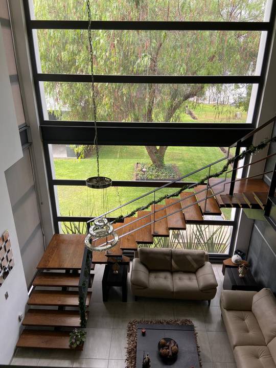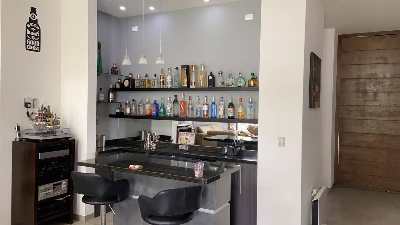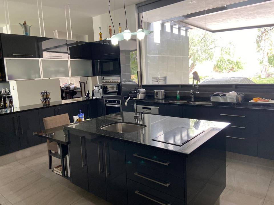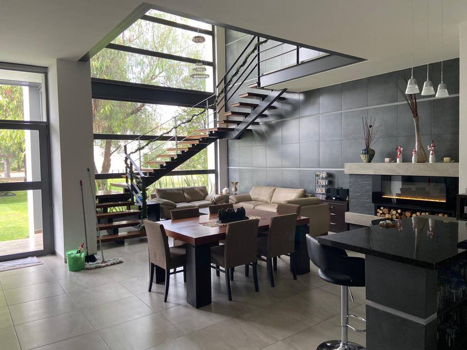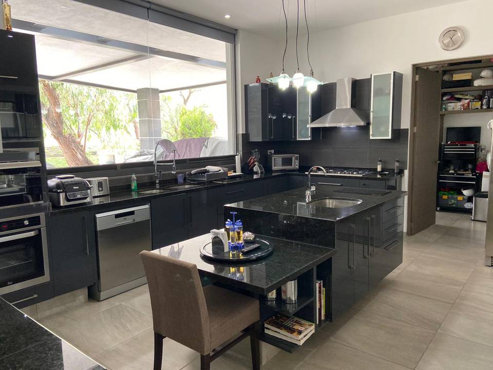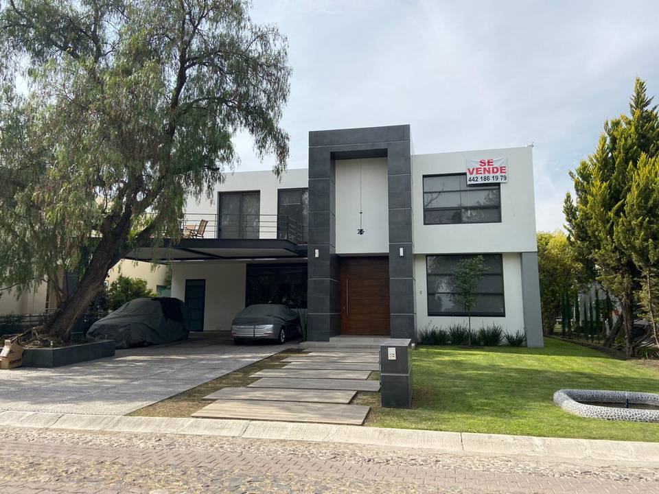 Casa en venta en Querétaro en Balvanero Golf Polo & Country Club uno de los Fraccionamientos más exclusivos de la Ciudad con vigilancia 24/7 campo de Golf, Club de Polo, Casa club con alberca, canchas de tenis, Club hípico, Hotel y Restaurante La casa cuenta con dos niveles en planta alta tres amplias habitaciones con baño completo y vestidor la principal con una gran terraza con vista espectacular, gimnasio, sala de TV. En planta baja sala con chimenea, comedor y bar con tarja y barra; todo con techo de triple altura y vista al bosque de Balvanera, sala de TV, área de lavado , cuarto de servicio ó área de tendido, Estudio, dos medios baños, bodega, increíble cocina integral con isla y plancha de granito y amplia alacena, excelentes acabados en todas las áreas, escalera de madera con herrería, pisos de cerámica antiderrapante, amplio jardín con sistema de riego de aspersión, estacionamiento para 5 autos 2 techados construida en 2019, 2 cisternas de 8000 lts y otra de 4500 lts. Además cuenta con un agradable loft o casa de un nivel gran cocina con barra de granito, una habitación con vestidor y baño, sala con muro llorón, comedor, terraza, baño de visitas, área de lavado. Superficie de terreno 1000 mts2 (20x50) Superficie de construcción 435 mts2 más loft 565mts2 PRECIO $16,450,000 PESOS INFORMES Theresa Vizcarra 442-4117634