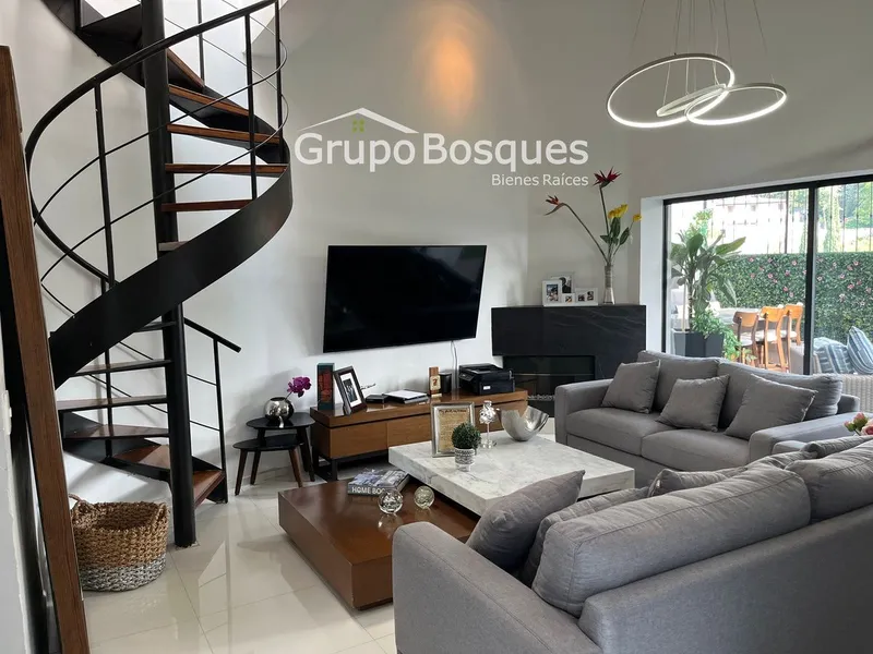 Casa con medios niveles en Lomas de Tecamachalco Hermosa y acogedora casa con espacios amplios, iluminación natural y hermosa vista. DESCRIPCIÓN Nivel 1 - Jardín - Terraza con pérgola - Recámara 1 - Con closet y salida al jardín - Recámara 2 con estudio - 1 Baño completo con tina y regadera - Sala con chimenea - Oficina Nivel 2 - Comedor - Desayunador - Cocina con alacena - Baño para visitas - Patio - Cuarto de lavado - Cuarto de servicio con baño Nivel 3 - 3er recámara con walking closet y baño - Recámara principal con baño, closet y balcón - Sala de tv o Área de lectura Nivel 4 - Estacionamiento para 3 autos Cuenta con espacio de almacenaje debajo de escalera principal Diseño moderno con espacios inteligentes y conectados Ideal para familias grandes o quienes disfrutan de recibir visitas Privacidad y comodidad en cada nivel Agenda tu cita para conocerla * No incluye el mueble de tv de la recámara principal ni persianas. -- Precio sujeto a cambios sin previo aviso y disponibilidad --