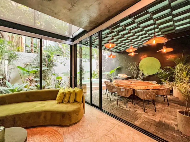 Encantadora villa en "Mar y Miel" es un desarrollo de solo 24 residencias de lujo , con arquitectura inteligente que optimiza los recursos, como la luz y el aire cruzado por toda la casa. Con una ubicación privilegiada en Aldea Zama la zona más residencial del momento por su cercanía a la playa, restaurantes y cafés más top del mercado. La casa cuenta con amplios espacios, 3 pisos , 3 recamaras y esta totalmente amueblada y equipada, con estilo muy eco chic y muy selvático y por supuesto con el confort y diseño de una casa de lujo cubriendo las necesidades para tener una vida muy privilegiada y muy al icónico estilo TULUM. Dentro de la casa cuenta con un area con alberca privada, un comedor de exterior espectacular y bbq para disfrutar al 100 cada espacio de la villa. Amenidades: Seguridad privada Caseta de acceso Estacionamiento asignado a cada unidad Estacionamiento de visitas Áreas verdes Para mayores informes * *