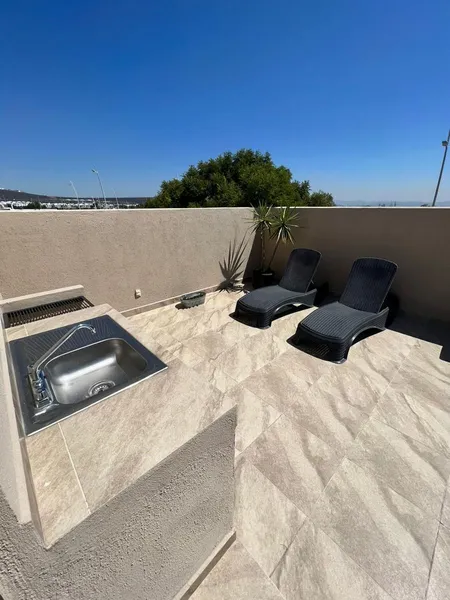 Modelo D (Muestra Zakia) Cuenta con: 180m2 de Construcción 213m2 de Terreno PLANTA BAJA Sala con sonido ambiental Comedor Cocina abierta y equipada con isla desayunador Estudio o área de TV Medio baño 2 Lugares de estacionamiento PLANTA ALTA Recámara principal con vestidor y baño completo Preparación para aire acondicionado en estancia y rec principal Recámaras secundarias con closet Baño completo ROOF GARDEN Asador Tarja Entrega en Agosto 2024 ¡VEN Y CONOCELA!