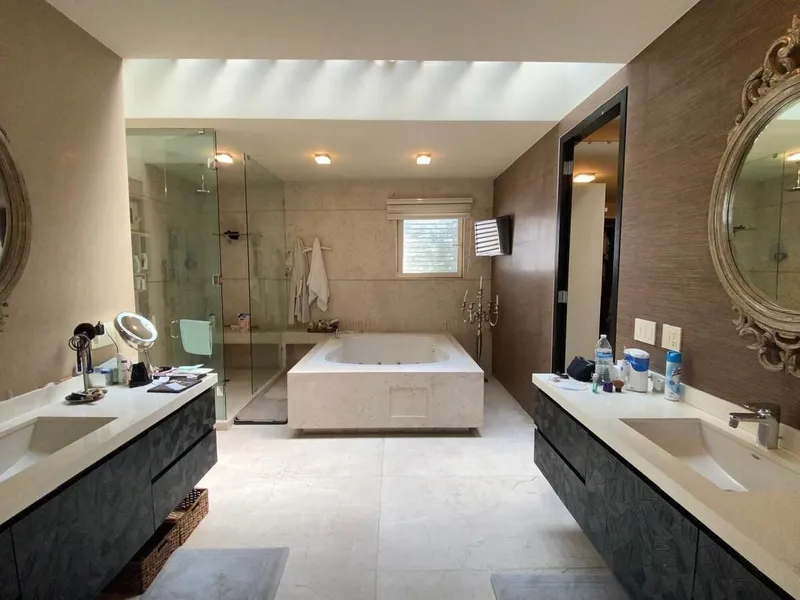 Espectacular residencia en calle privada con vigilancia, increíble proyecto arquitectónico con techos de doble altura espacios perfectamente diseñados para disfrutar de su lujo, comodidad y tranquilidad de la zona. Vivirás rodeado de naturaleza con vistas verdes. La recamara principal cuenta con una increíble terraza y gimnasio, vestidor y baño. Las dos recámaras adicionales cuentan con tapanco, baño y vestidor. Family room de excelente tamaño, con pequeña cocineta, con terraza grande. Estancia y sala con chimenea, salón de juegos y TV con bar (fábrica de hielos y conservador de vinos). Disfruta de increíbles veladas en su acogedora cava, sala de música en mezzanine, oficina, alberca techada con jacuzzi y salida al jardín. Espacioso comedor con acceso a una enorme y funcional cocina con equipo profesional y desayunador. La casa esta ubicada en una zona boscosa federal por lo que podrás disfrutar de esta zona sin restricción, zona en la que puedes encontrar una casa del árbol.