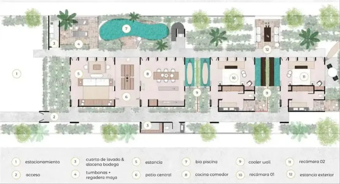 Casabajareque es un tejido emocional que resguarda espacios que conectan... es un portal verde donde el tiempo desaparece y conecta tu cuerpo en un paseo de riqueza sensorial... Vive en armonía con la naturaleza, la cultura y los secretos de la selva maya. 5 Bungalows etapa 1 2 Recamaras 2 1/2 Baños Estancia principal Comedor Cocina Roof Top biopiscina mayan shower cooler wall / water walk área de lavado 3 estacionamientos alacena / bodega 196 m2 de construcción 102 m2 áreas semitechadas 147 m2 de lounges and pits 458 m2 área libre / 73% áreas verdes *Precio Publicado no incluye gastos notariales, ni impuestos por adquisición de Inmuebles. *No incluye mobiliario mostrado en fotografías y Renders. *Pregunte por los términos y condiciones legales **Los precios pueden variar dependiendo el plan de pagos **Consulte lista de precios y ubicaciones disponibles ***El precio es informativo. El desarrollador se reserva el derecho a modificar los precios sin previo aviso.