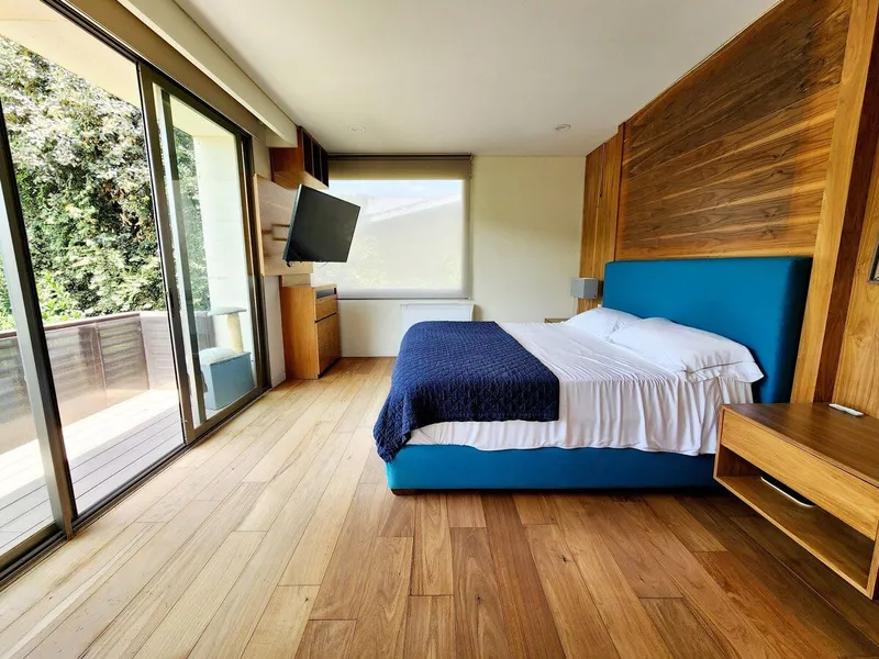 Ubicada frente al campo de Golf. Construida en 3 niveles. Acabados en madera y mármol. Persianas eléctricas. A/C en recámaras. Entrada con portón de madera y fuente en desniveles. 1 recámara con baño y vestidor. 1 recámara con baño, vestidor y balcón. 1 recámara con baño y vestidor. Recámara prinicipal con terraza, walk in closet, baño y jacuzzi exterior. Sala T.V. Biblioteca. 2 medio baños de visitas. Cava con bar. Estudio. Sala y comedor con salida directo al jardín. Jardín con pérgola y vista hacia el campo de golf. Cocina con barra y alacena. Gimnasio. 2 salones para oficinas. 3 cuartos de servicio. Bodegas. Área de lavado. Estacionamiento techado para 4 automóviles. Rampa para estacionar 3 automóviles. Cuarto de choferes con baño. Cuarto de máquinas para el hidroneumático y calefacción. *Incluye memebresía al Club de Golf Bosques de Santa Fe. NO incluye la cuota de traspaso de la acción con un costo de USD$29,000 Para consultar el aviso de privacidad, quejas y sugerencias, etc. visita nuestra página web. * El precio del inmueble no incluye los gastos notariales, ni impuestos por escrituración. Así como en las operaciones por medio de crédito bancario, la comisión de apertura, los gastos de investigación, avalúo, impuestos de escrituración, cargos crediticios, etc, se sujetarán a las condiciones del crédito de la institución financiera que lo otorgue. No incluye el mobiliario y arte que se muestra en las fotografías. La disponibilidad y el precio están sujetos a cambios sin previo aviso.