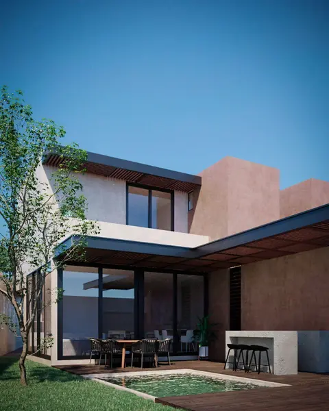 DIMENSIONES DEL TERRENO •Frente aprox: 7.90 metros •Fondo aprox: 21.50 metros. •Superficie aprox.: 169.85m2 DESCRIPCIÓN PROTOTIPO A PLANTA BAJA -Cochera techada de concreto y apergolado louver para 2 vehículos. -Cuarto de servicio con baño completo y área de lavado. -Vestíbulo de acceso. -Área de escalera con muros de block. -Cocina con Barra Desayunador. -Área de Alacena (No incluye carpintería). -Sala | Comedor. - baño de visitas compartido con terraza. -Pasillo de servicio. -Área de terraza. -Áreas de verdes. -Alberca. -Bodega. PLANTA ALTA -Recámara principal con área de clóset vestidor (No incluye carpintería), baño completo y balcón. -Recámara 2 con espacio para dos camas individuales y área de estudio con área de clóset vestidor (No incluye carpintería) y baño completo. -Recámara 3 con área de closet (No incluye carpintería) y baño completo. -Closet de blancos (No incluye carpintería). -Área de lavado y tendido. -Área de balcón en común. *Carpintería en parte superior e inferior de cocina (únicamente área de meseta donde esta ubicada la tarja). EQUIPAMIENTO INCLUÍDO -Techado de terraza con estructura metálica tipo louver. -Techado de cochera de concreto y pergolado tipo louver. -Calentador eléctrico. -Cristal templado en baño recámara principal. -Espejo en baño de recámara principal. -Presurizador. -Piedra cantera tipo artesanal en área Sala –Comedor. ÁREAS COMUNES Área de servicio: Área de recolección de basura con acceso desde el desarrollo. Área de transformador y medidores ocultos. Accesos: Área de acceso vehicular con portón eléctrico. Área de acceso peatonal controlado con reja e interfon a cada villa. Spots interactivos: Área de juegos infantiles Área de Sillas de convivencia Área de estación de bicicletas Diseño de paisaje en áreas verdes. Sistema de riego. Iluminación con diseño arquitectónico. Andadores peatonales. Entrega en febrero 2024 Apartado 15 mil (reembolsables) Se aceptan créditos bancarios y recursos propios Cuota de mantenimiento: $1,900 Avisos *La cuota de mantenimiento se ajustará al momento de escriturar, pudiendo tener una pequeña variación, se informará antes de la escritura. *Los precios publicados en esta ficha son de referencia y no constituyen una oferta vinculante y pueden ser modificados por la desarrolladora en cualquier momento y sin previo aviso. *Así mismo, los precios aquí publicados no incluyen, cantidades generadas por contratación de créditos hipotecarios, ni tampoco gastos, derechos e impuestos notariales, rubros que se determinarán en función de los montos variables de conceptos de créditos, aranceles notariales y legislación fiscal aplicable.