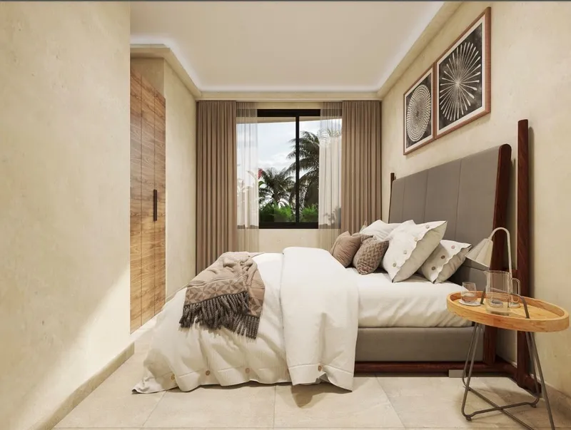 Actualmente Tulum se ha convertido en tendencia mundial gracias a que conecta con la verdadera belleza natural y el profundo encanto espiritual, volviendo a los verdaderos valores, ahora a 40km del Aeropuerto de Tulum. Desconecta y vuelve a conectar, tan solo con ver una foto de Tulum ya sabemos que este lugar de México es lo más parecido al paraíso en este mundo, playas de arena blanca y aguas turquesa, vestigios mayas, cenotes sagrados, restaurantes llenos de encanto, parques únicos y una gran cantidad de opciones recreativas Este nuevo proyecto está diseñado con la finalidad de disfrutar la fusión entre toda la magia que envuelve a Tulum y un diseño arquitectónico sensacional y elegante, situado en una de las zonas de mayor crecimiento y plusvalía con gran conectividad para estar cerca de todos los sitios de interés. Conjunto residencial con sólo 43 exclusivas unidades dentro de la Región 15, que te ofrece la oportunidad de vivir una genuina experiencia de comodidad y descanso en el corazón de la Riviera Maya , la mejor plusvalía de la zona para tu inversión. Cuenta con una gran cantidad de amenidades que harán de tu estancia en Tulum inolvidable. Lobby / Recepcion Elevador Alberca Asoleaderos Gym Grill Estacionamiento Lavandería Estacionamiento para bicicletas Contamos con tipologías estudio, de 1 y 2 recámaras con baño, desde 38.44m2 hasta 76.73m2, en diferentes formatos, *totalmente equipados, bajo esquemas desde el 50% de enganche se entregan amueblados y decorados, con llave en mano. Administración libre. No tendrás que preocuparte por nada, nos encargamos de mantener tu inversión en perfectas condiciones generando el mejor ROI del mercado. Aprovecha esta preventa exclusiva. Excelente ubicación a 7 minutos de la playa, a 10 minutos de las mágicas ruinas de Tulum, así como de restaurantes, bares y tiendas comerciales, todo lo que necesitas para tener la mejor inversión de la Riviera Maya, entrega en enero del 2026. Depto de 2 Recámaras (Desde 69.31m2 - 76.73m2) 69.31m2 / 746 f2 (No.202) 2 Recámaras Baño completo Cocina Estancia Comedor Terraza Alberca privada Consúltanos para saber de otras tipologías disponibles, elige la que más se adapte a tus requerimientos y presupuesto. Las unidades se entregan con : Aire acondicionado Ventilador de techo Cocina equipada Totalmente Amueblada Equipada* Decorada* No pierdas esta gran oportunidad, si estás buscando exclusividad, calidad de vida, tranquilidad, seguridad y un gran estilo de vida, no busques más. Contáctanos y con gusto te atenderemos. Pregunta por el financiamiento directo del desarrollo. Precio y disponibilidad sujetos a cambio sin previo aviso. Toda la información y medidas provistas son aproximadas y deberán ratificarse con la documentación pertinente y no compromete contractualmente a nuestra empresa. Los gastos (Expensas, Avalúo, etc.) expresados refieren a la última información recabada y deberán confirmarse. Fotografías no vinculantes, pueden haber presentado algún cambio posterior. Mi Casa Propia es responsable de recabar sus datos personales, de su protección y del uso que se le dé a los mismos. Su información personal será utilizada para proveer los servicios, promoción, asesoría y productos que ha solicitado, informarle sobre cambios en los mismos y evaluar la calidad del servicio que le brindamos.