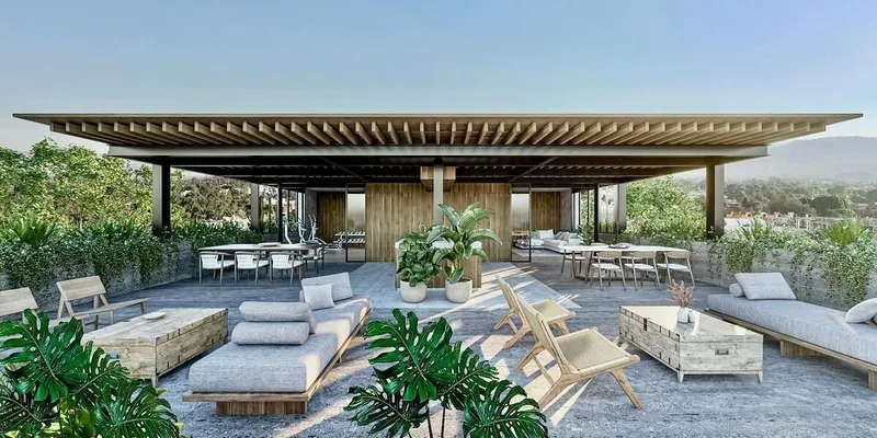 Estrena Departamento Penthouse en Bosque de las Lomas, sobre Paseo de Ahuehuetes Norte. CARACTERISTICAS 140m2 en Total 1 Recámara con Baño y Vestidor (Se puede convertir en 2 recámaras) 2 Baños Completos Sala Comedor con Amplia Terraza y Balcón Cocina Abierta con Isla y Barra de Cuarzo Espacio para el Refrigerador Amplio Cuarto de Servicio Área de Lavado Integrada 1 Estacionamiento Roof Garden Privado EDIFICIO Y AMENIDADES Edificio Boutique de Solo 10 Departamentos 5 Pisos Edificio Cuenta con Roof Garden Común Pergola en Roof Garden Área de Asador Elevador Seguridad 24 horas. PRECIO DE VENTA: $11,000,000 MXN